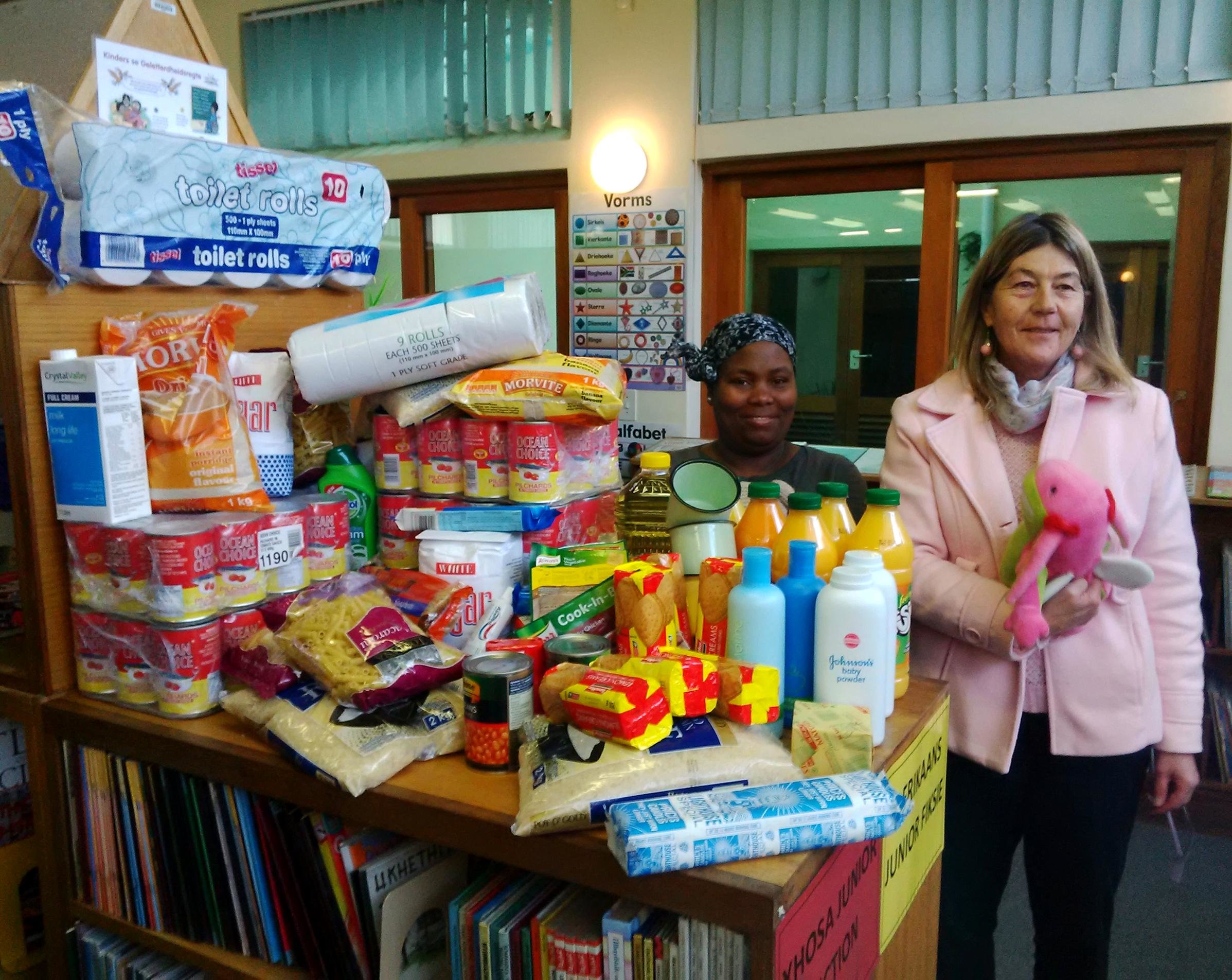 “Wat ‘n lekker Loslitdag 2015 was dit nie en ons wil graag ‘n groot dankie sê aan almal wat mildelik bydraes by die Biblioteek afgelaai het,” vertel Sharman Geldenhuys, Gansbaai se Bibliotekaris. “Ons het ‘n hele blomblaar vol kos, toiletware en speelgoed gekry wat ons namens die Biblioteek op die grasperk voor die munisipalekantore kon gaan uitpak.” Sy sê ook dat De Kleine Gansies se kleuters pragtig met hulle blommetjies en vlerkies gelyk het, met die tema “spring into action”. Hulle was ook behulpsaam met die uitpak van die Biblioteek se bydrae, terwyl hulle ook vir biblioteekpersoneel gesing het. “Ons het letterlik - spring into action - gehad toe die twee Graad R klasse van Laerskool Gansbaai ons sommer ook met ‘n besoek by die Bilioteek verras het,” sê Sharman. “Hulle is baie bevoorreg om twee sulke oulike Graad R juffrouens te hê.” Sharman bedank ook graag Gansbaai munisipaliteit wat hulle bussie vir die vervoer van die kinders beskikbaar gestel het, asook Gansbaai se Brandweerpersoneel vir hulle bydrae.