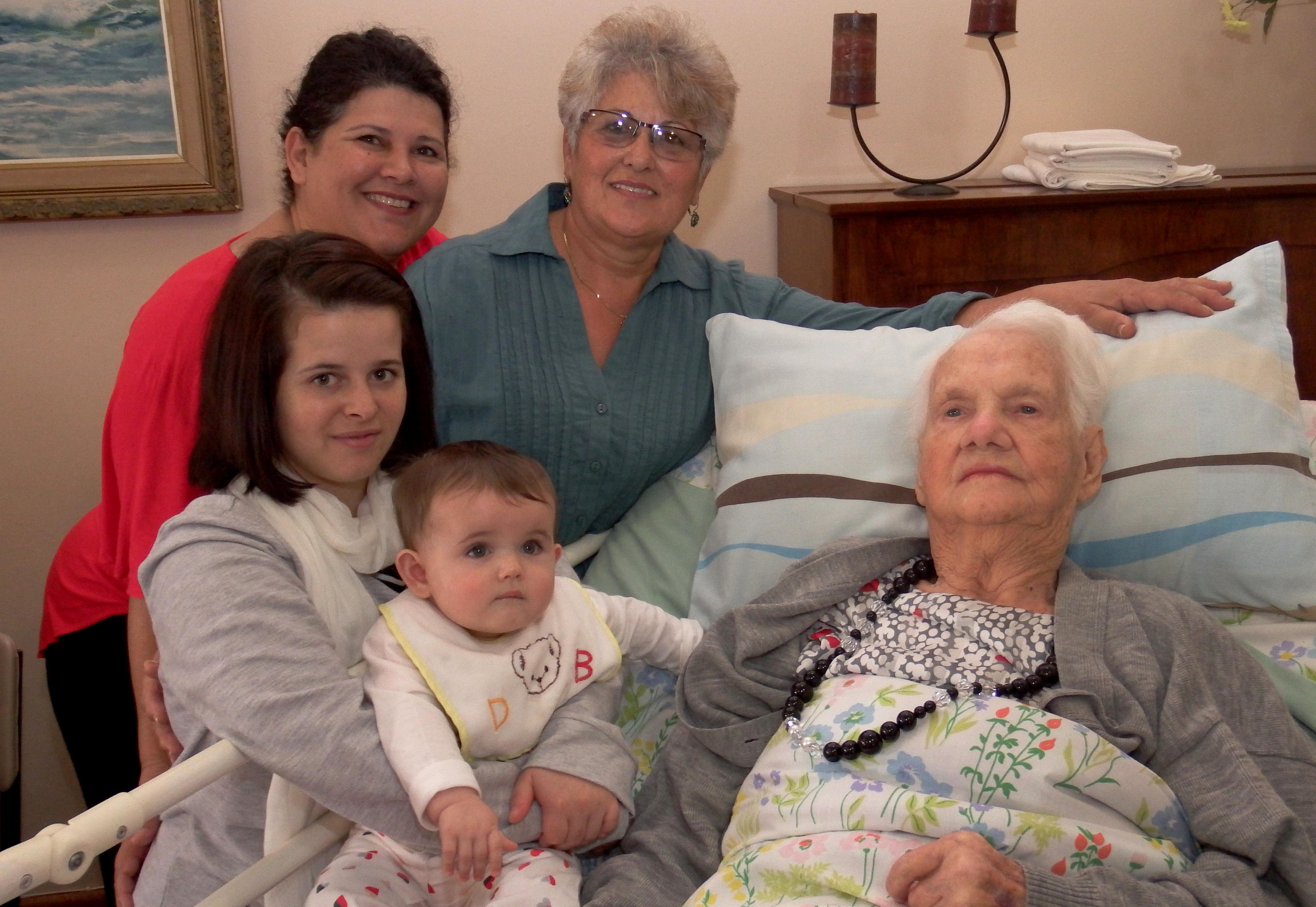 Wyle Tannie Rens was ‘n bevoorregte moeder, ouma, oumagrootjie en groot-groot oumagrootjie. Jaar na jaar het die kinders, kleinkinders, agterkleinkinders en familielede by HaS bymekaargekom en sommer ‘n groot partytjie vir haar gereël - met genoeg eetgoed sommer vir HaS se sitkamer vol vriende en familie, ook vir die inwoners. Jaar na jaar het Gansbaai Courant ‘n beriggie oor hierdie pragtige Omgee-familie en Tannie Rens se verjaardae geskryf. Vanjaar gedurende April was dit die laaste keer wat die familie te beurt geval het om dit te kon doen. Die volledige 5 geslagte was teenwoordig: Tannie Rens Fourie, Maria Otto (skoondogter), Ronel Visser (kleinkind), Marnel Rossell (agter-kleinkind) en Mienke Rossell (agter-agter-kleinkind). Tannie Rens het alles rustig op haar bed gelê en gade slaan, maar die vonkel in haar oë het vertel dat sy groot waardering het vir al die moeite wat vir haar verjaardag gedoen is en die gesellige samesyn van familie en vriende wat haar op haar verjaardag besoek het en bederf het.