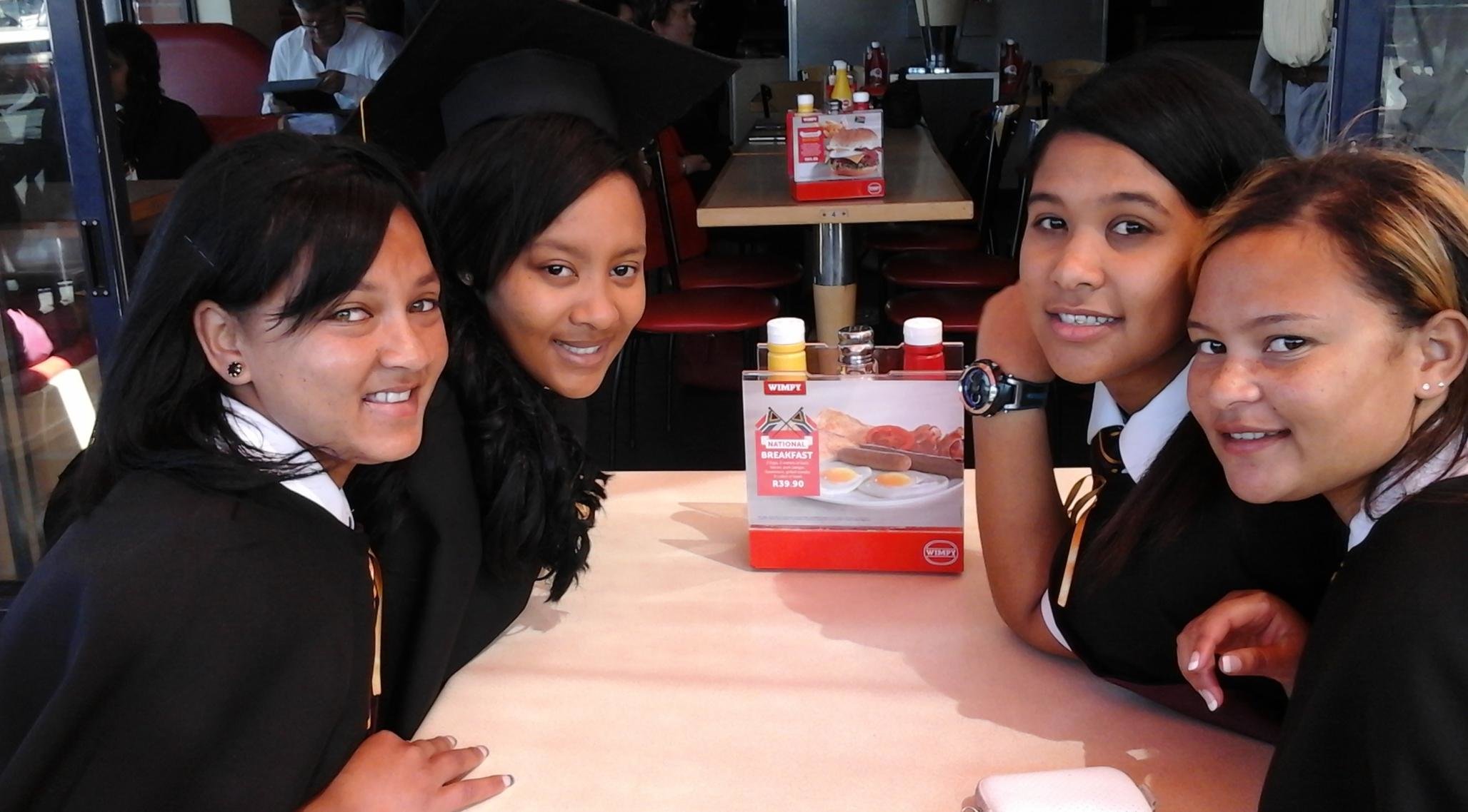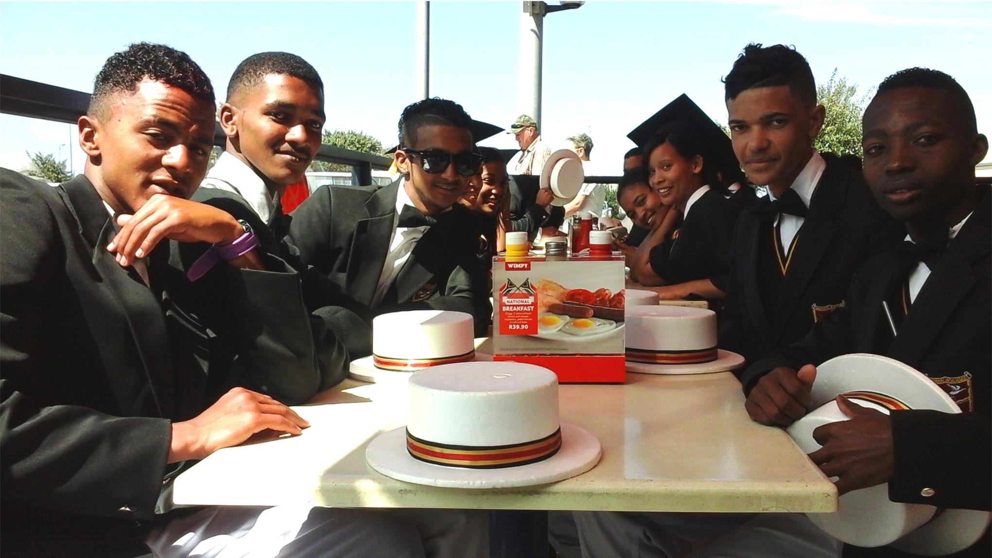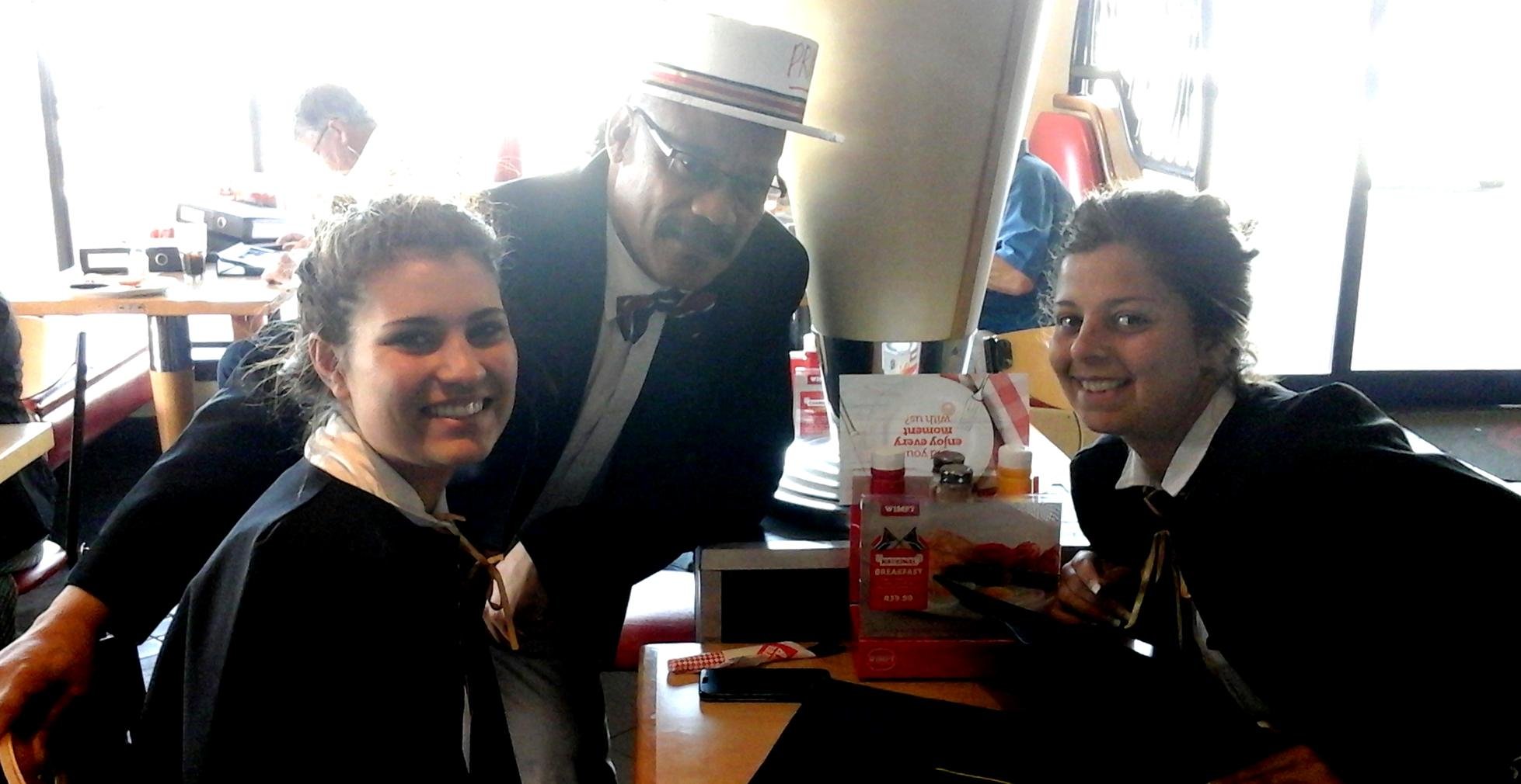 Vanjaar was die leerders weer getrakteer op ‘n heerlike ontbyt by Wimpy vanwaar die tradisionele “dorploop” begin het. Soos die groep in die Hoofstraat afgeloop het, het mense gewaai en gegroet. Danksy die Verkeersdepartement was daar geen ongelukke nie.