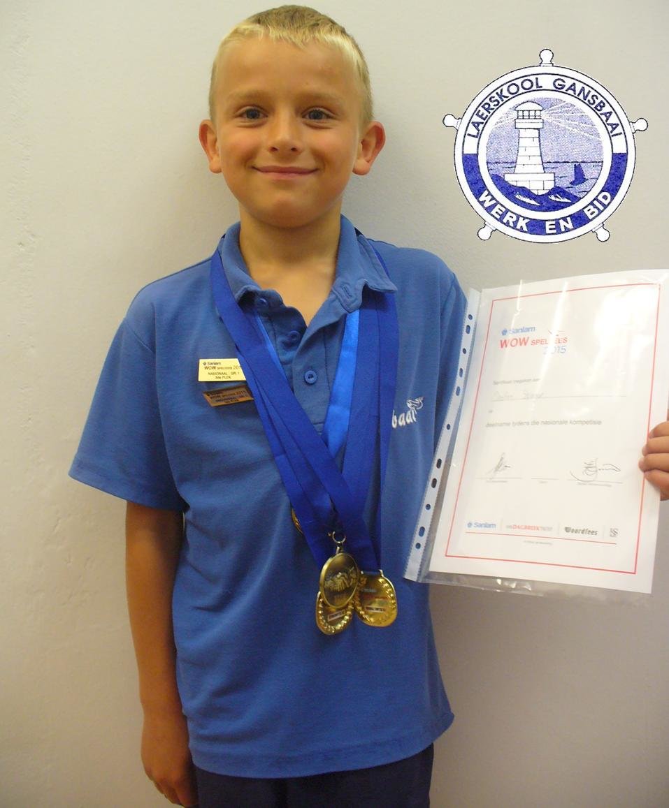 Op Saterdag, 17 Oktober 2015, het Stefan Stieger, graad 1-leerder van Laerskool Gansbaai, aan die Nasionale WOW Spelfees op Stellenbosch deelgeneem.