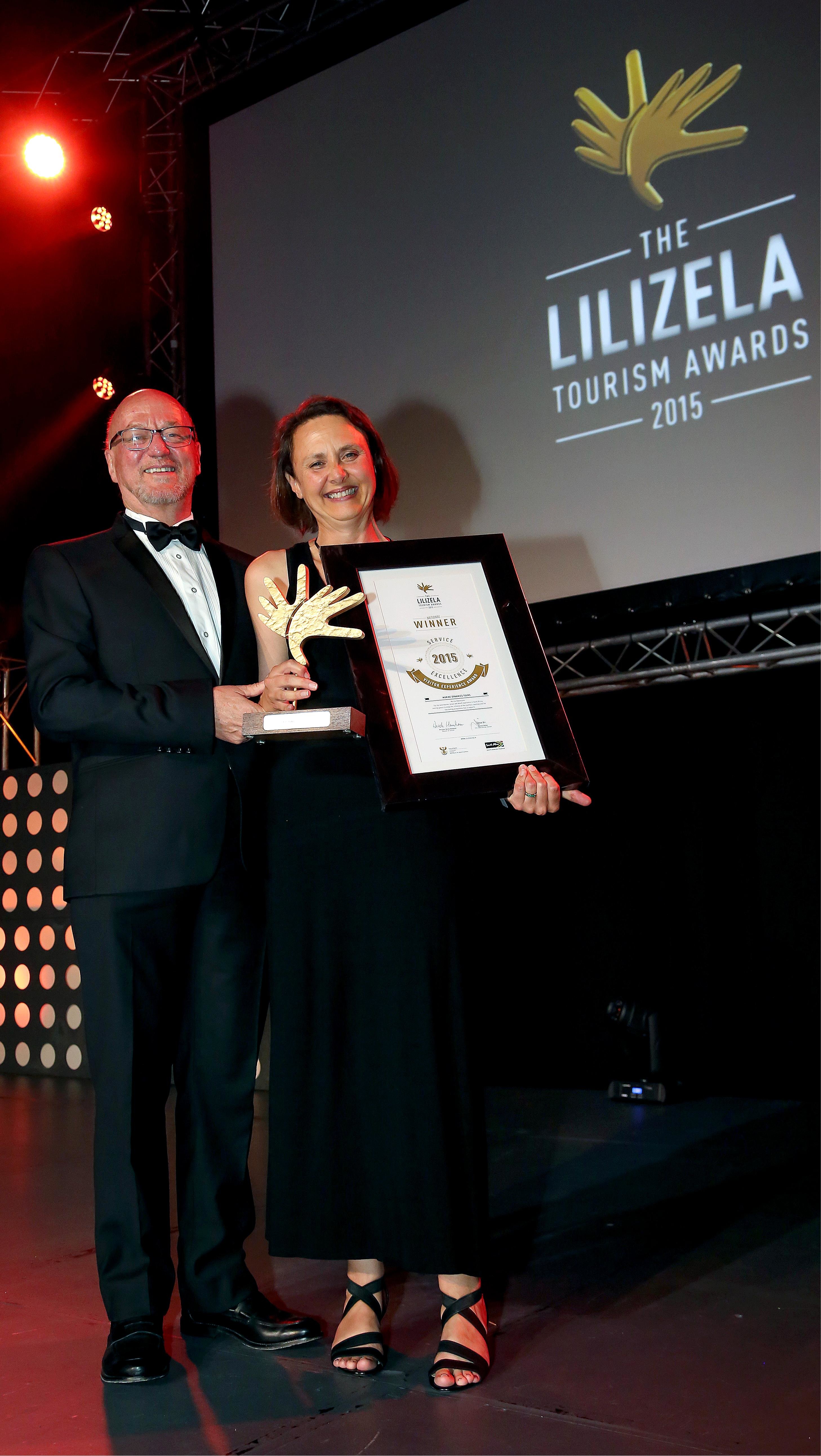 Marine Dynamics Tours is very excited to have won the National Lilizela Award for Best Visitor Experience: Marine Adventure. There was much excitement leading up to the National Lilizela Awards held at a gala dinner at Sandton Convention Centre in Johannesburg on the evening of 22nd October 2015.