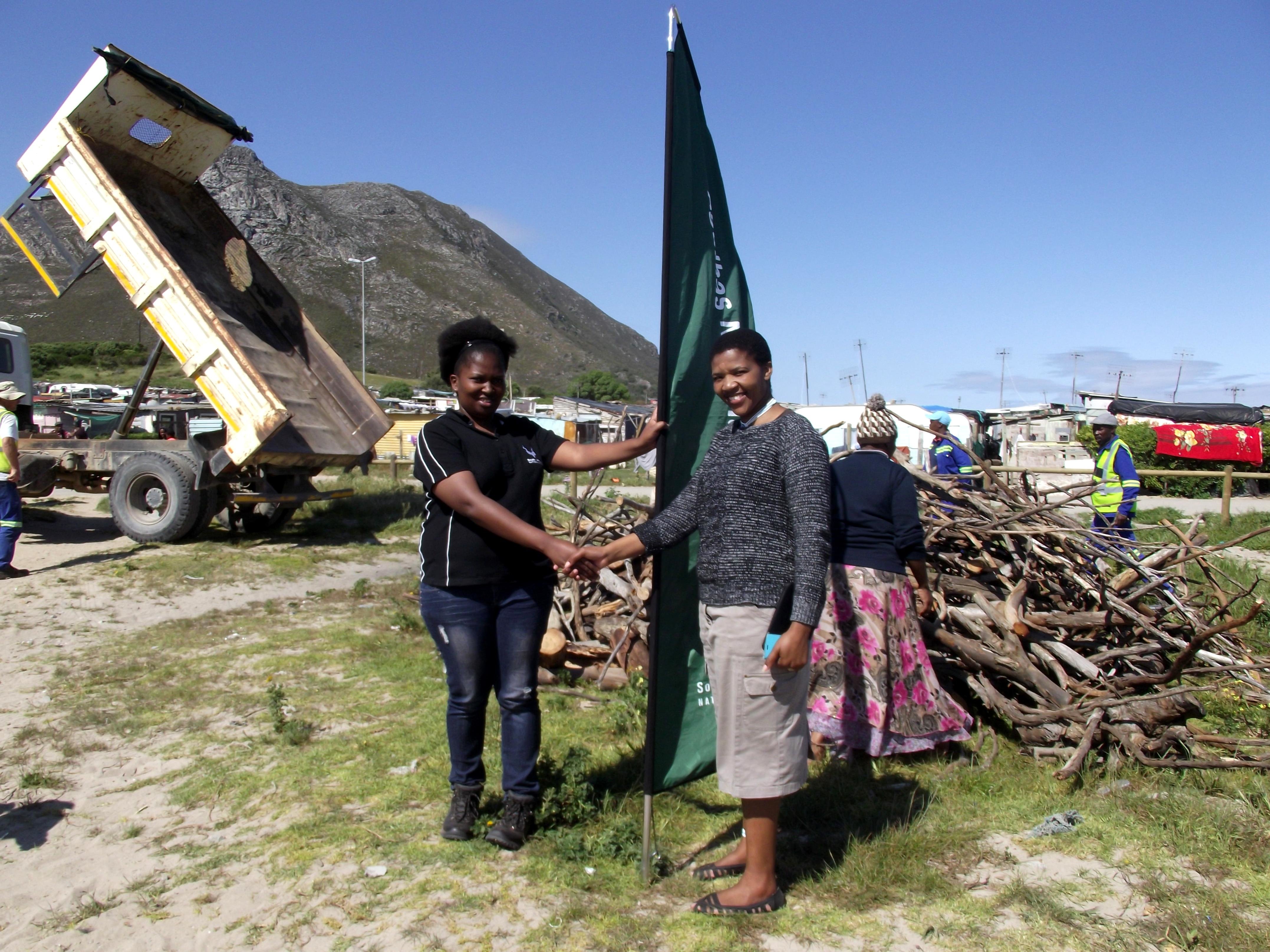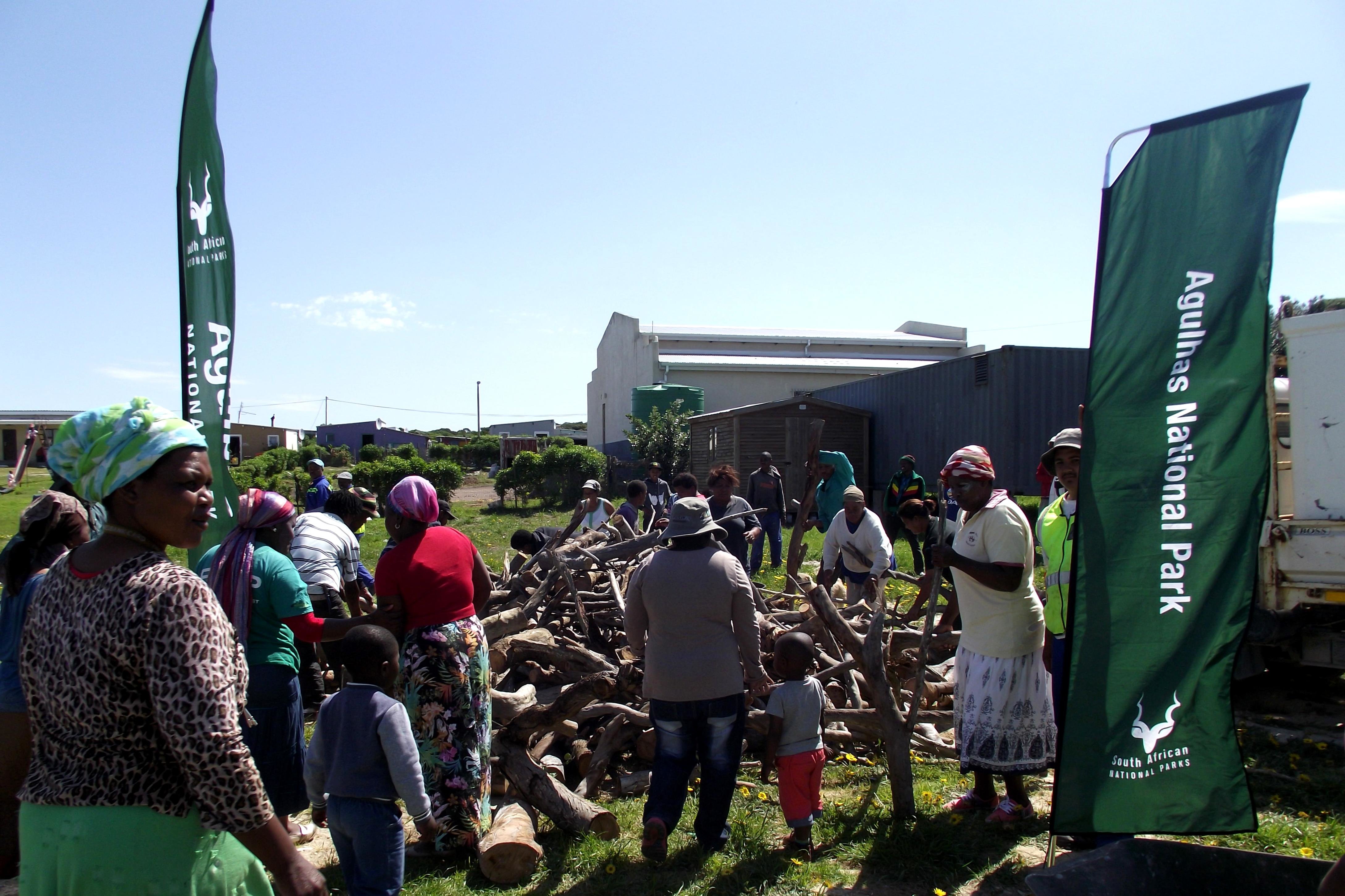 Two years of behind the scenes negotiating, research about local needs and deciding on what the park can offer local communities finally bore fruit on Friday 25th September 2015 when the park delivered 9 truckloads of wood to the nearby communities of Buffelsjagsbaai, Pearly Beach and Gansbaai. Under the leadership of ANP Park Management, Park Manager Miss Bulelwa Msengi actively encouraged her staff to make an effort to engage the neighbouring communities of the Overstrand municipal area. These communities were identified simply because they did not directly benefit from the Park as envisaged. Moreover the action also resulted in training for staff including the Working for Water chain saw operators, who ultimately were responsible for felling and chopping the large blue gum trees in the Ratelrivier area of the park. “ANP wants to live out the SANParks vision statement: connecting to society”, said Msengi. However before the Park could initiate any action an important stakeholder, Mr F. Myburgh, the Overstrand Area Manager, had to be consulted and informed of the park’s intention to deliver the much needed wood to the Buffelsjagsbaai, Pearly Beach and Gansbaai communities.