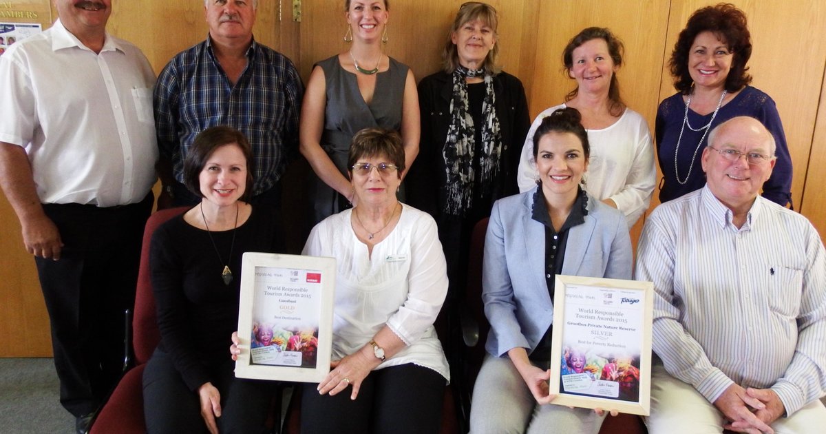 Daar is Gansbaai as eerste in die wêreld met goud bekroon tydens die World Responsible Tourism Awards in die Wêreld Handelsentrum in London. Grootbos Private Nature Reserve is met silwer bekroon. (Gansbaai Courant, Donderdag, 12 November 2015). Nadat die formaliteite afgehandel is, het Kat die sjampanje bottels se proppe laat klap. Hy het ‘n heildronk op Gansbaai as ‘n wêreldklasdorp ingestel, asook met verwysing na vele ander instansies wat daartoe bygedra het. Daarna is verversings geniet, met ‘n gesellige en opgewonde saamkuier ter viering van ‘n enorme groot oomblik vir Gansbaai as die Beste Verantwoordelike Toerisme-bestemming ter wêreld.
