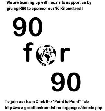 International sponsors are signing up to sponsor indivi-dual kilometers and donating accordingly. Local donors can get involved in our 90 for 90 campaign. We are challenging locals in the community to support the 90K by donating R90.