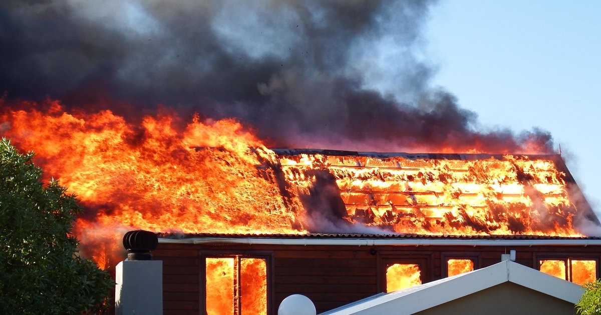 Vlamme lê huis in puin
