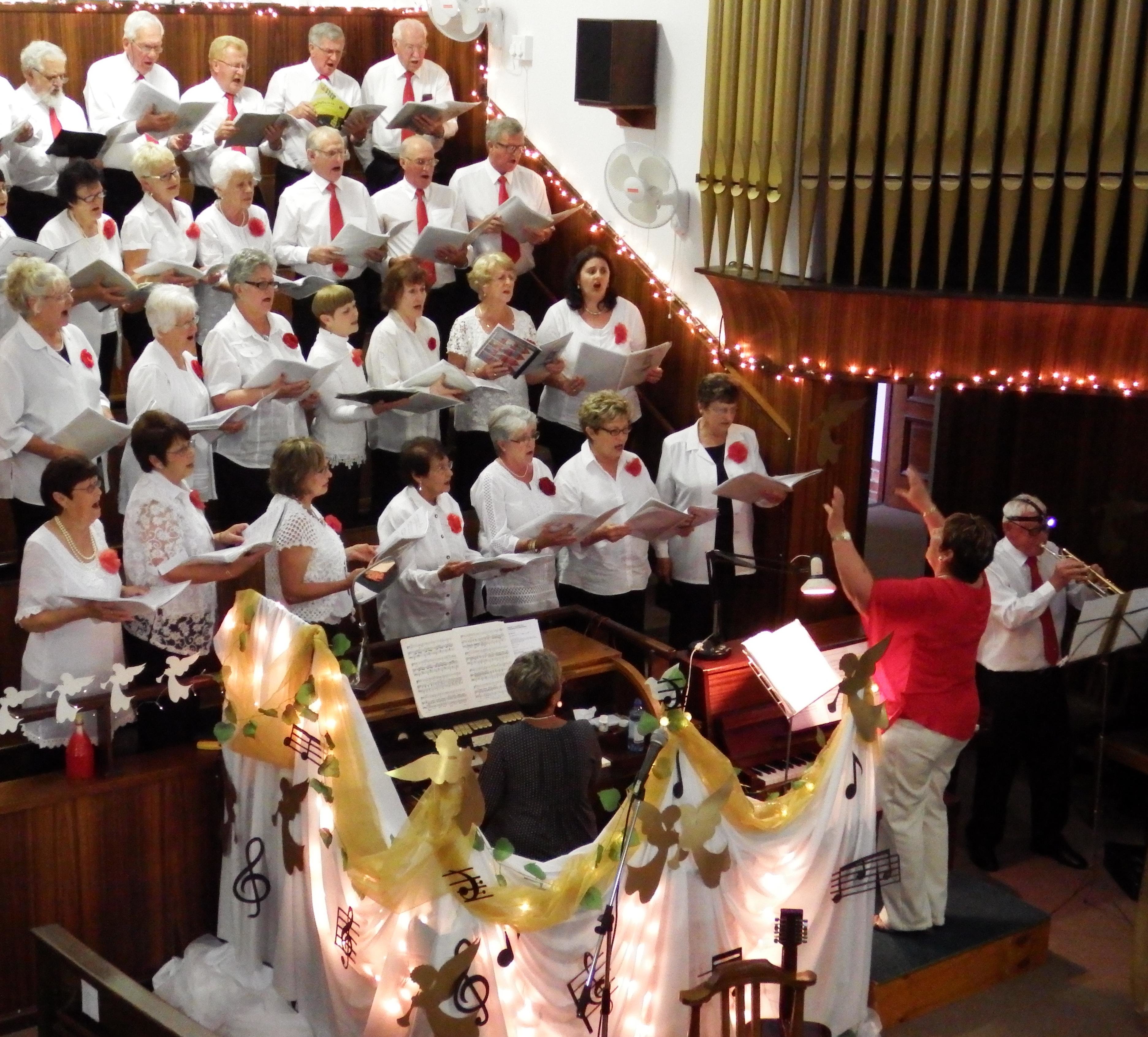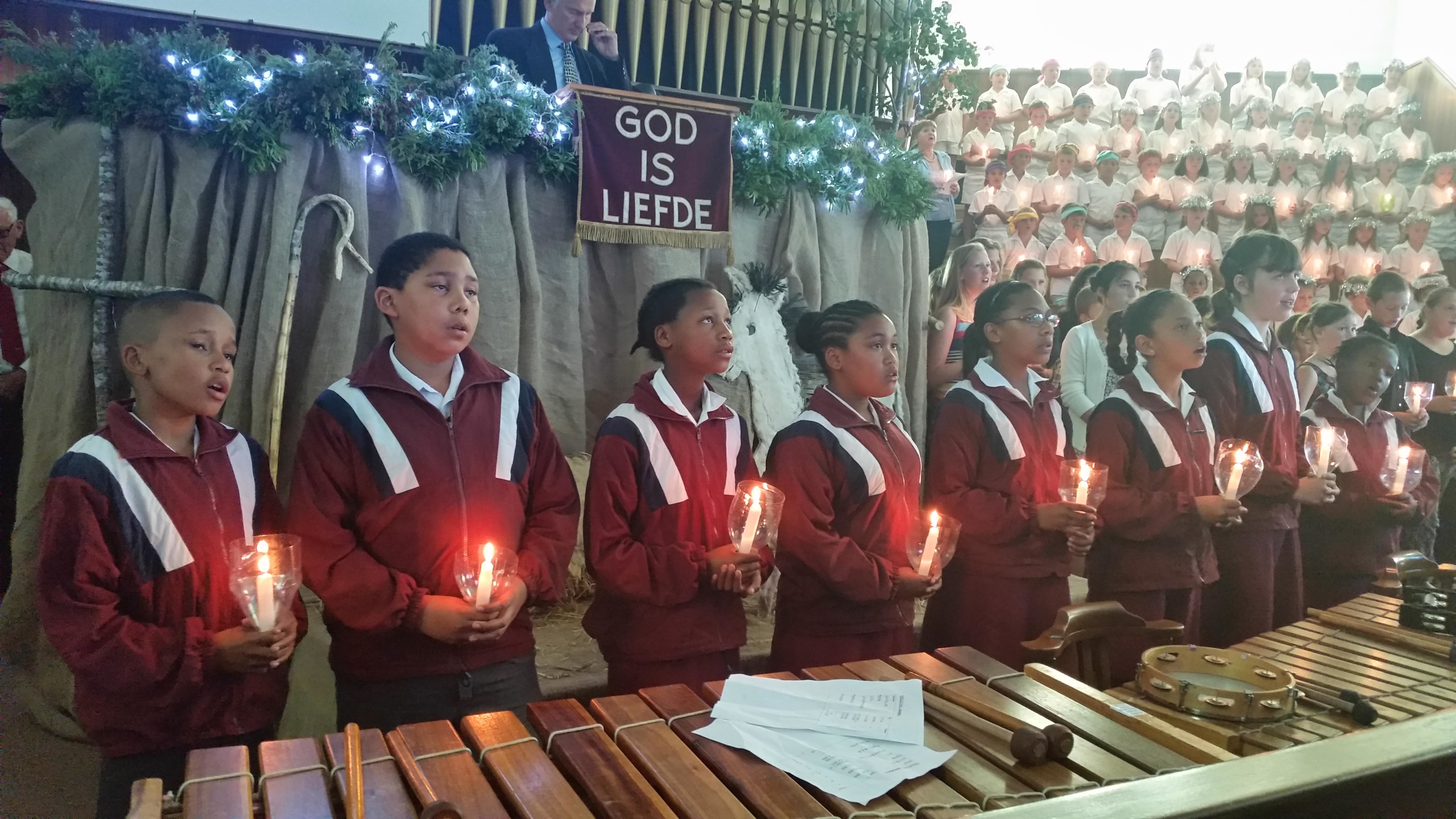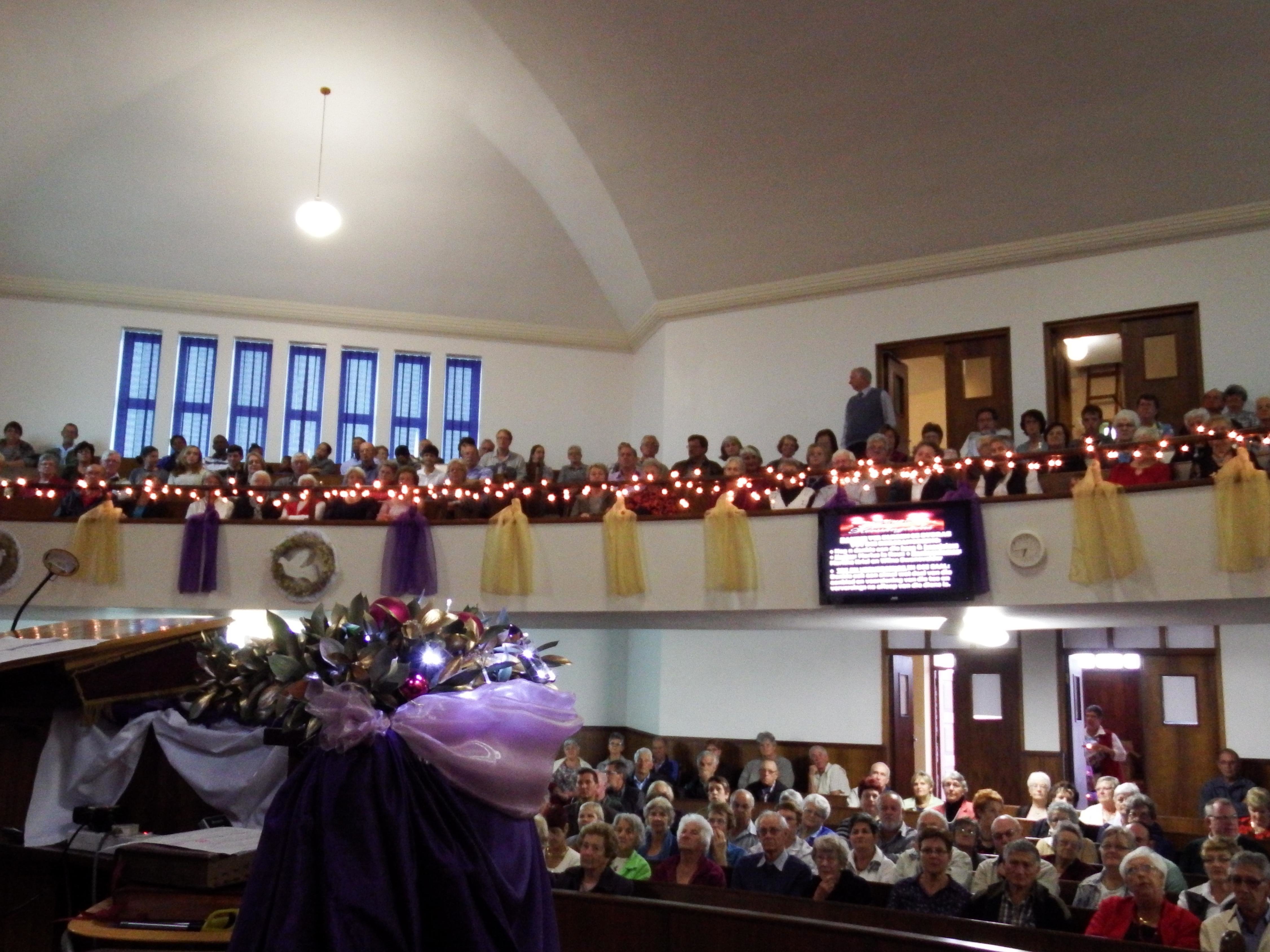 Hierdie jaarlikse Kerssangdiens onder leiding van Aletta Lochner op Sondag, 22 November in ‘n prag-versierde kerkgebou was weer eens ‘n belewenis om te kon bywoon. Die NG Kerkkoor met Aletta Lochner as koorleier en Annaline Reinke as orrel- en klavierbegeleier, se puik koorsang het soos altyd ‘n ware Christusfees atmosfeer geskep. Aletta was ook verantwoordelik vir die samestelling van ‘n uitstekende program. Jack White met sy bekende trompetgeskal het weer deelgeneem, asook Chris van Zyl met sy kitaar.