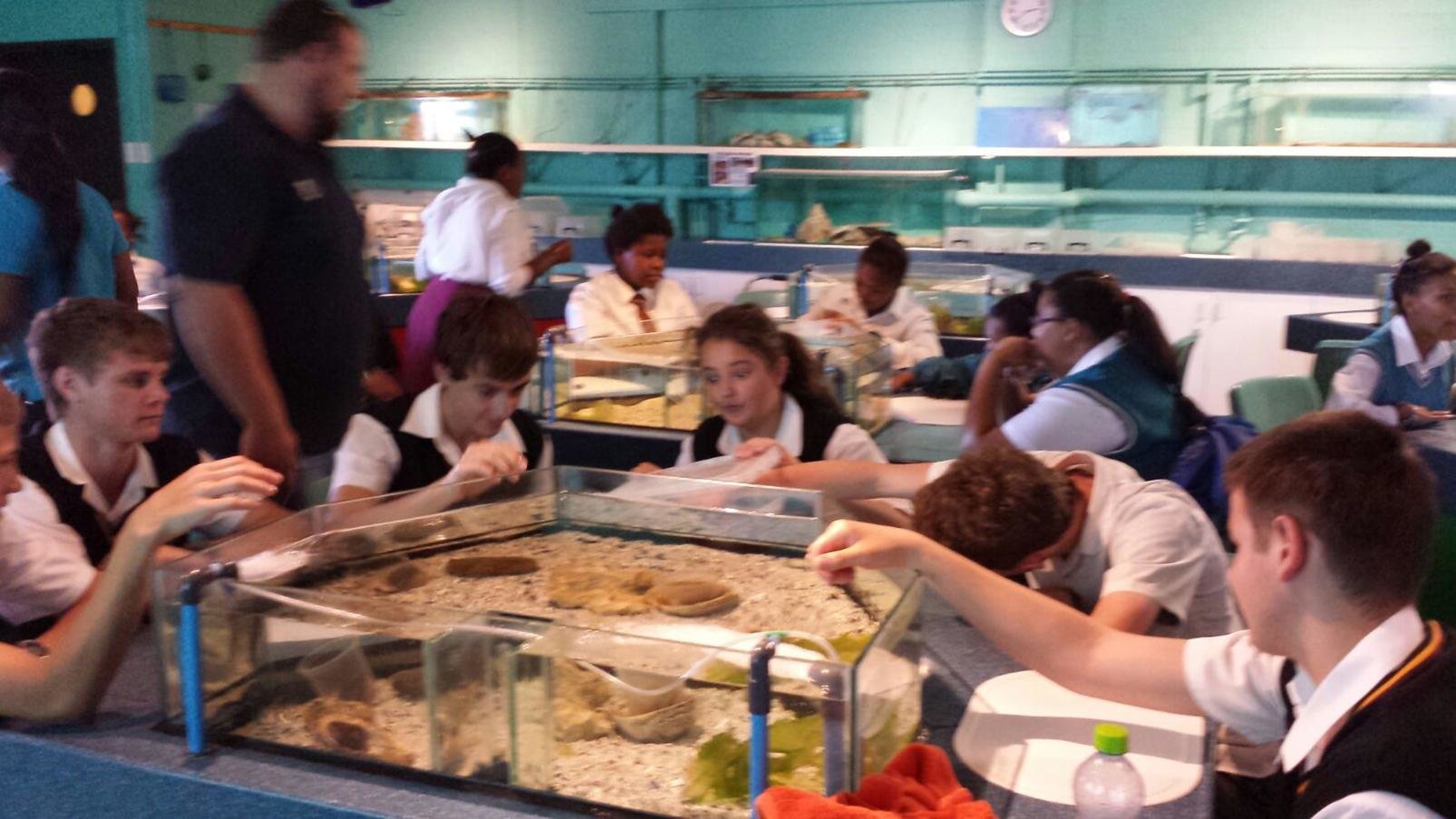 Die leerders het vanaf Kristenbosh vertrek na die Two Oceans Aquarium. Met aankoms het die leerders eers ‘n les ontvang oor haaie en hulle het ook ‘n geleentheid gekry om aan baba haaie te vat. Die leerders het na die les ‘n kans gekry om deur die Aquarium te loop om na al die diere te kyk en hulself te geniet. Hulle het ‘n heerlike middagete ontvang en was daarna gereed vir die lang pad terug Gansbaai toe. Dit was ‘n lang, warm dag maar die leerders het dit geniet en nie toegelaat dat die hitte hulle enigsins onderkry nie. Namens Gansbaai Academia se Marine Science Club wil ons vir mnr Russell Stevens van die Two Oceans Aquarium asook vir mnr Fudli bedank vir al hulle harde werk en ook die tyd wat hulle opgeoffer het om elke week met die leerders te werk.