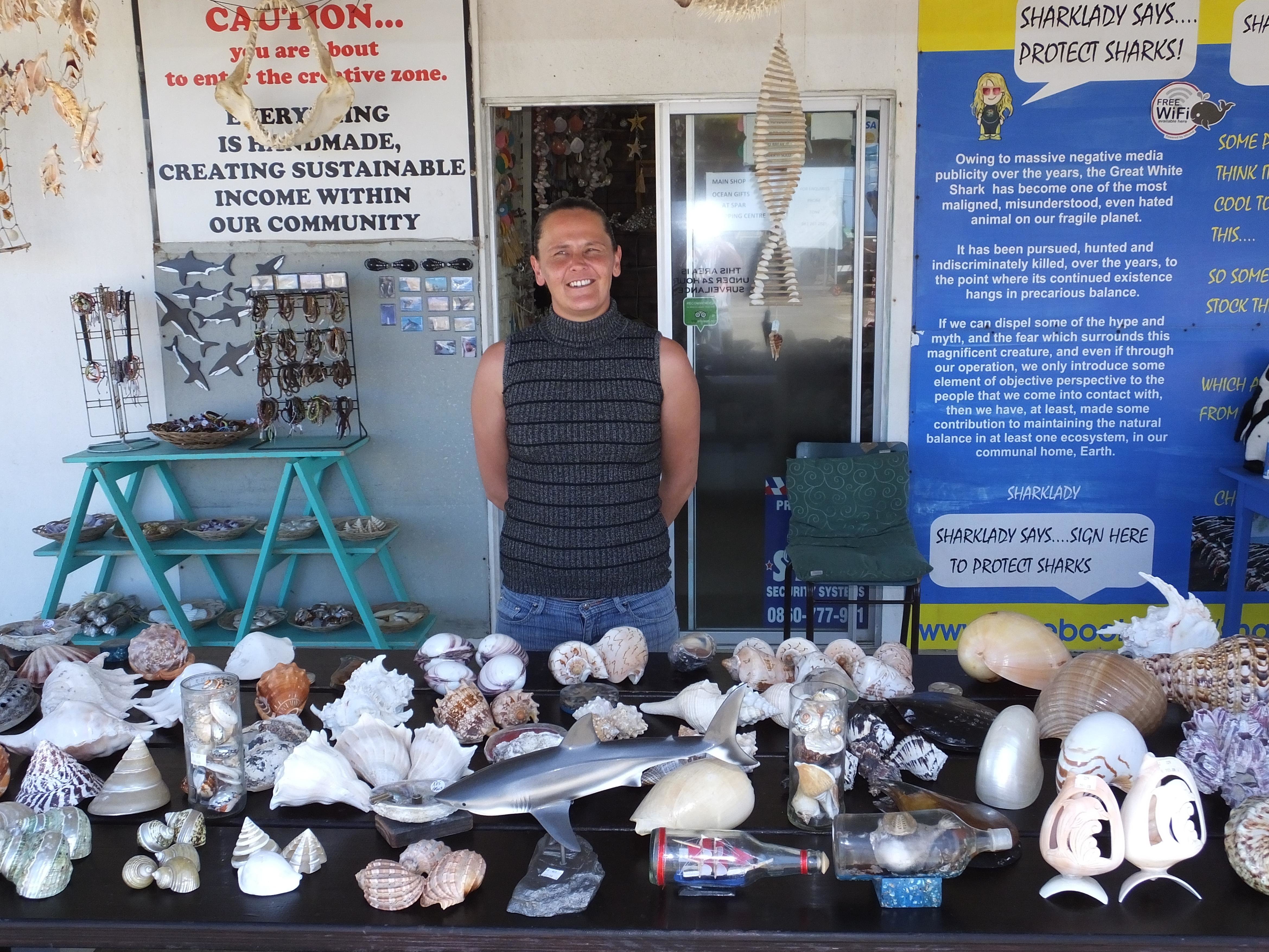 Promotion: Ocean Gifts is a treasure trove of shells and locally produced gifts. This beautiful shop in the Great White Centre is a marine experience and the owners, Tony and Nicky, gladly shares their knowledge. They also own a factory in Gansbaai that produces the shell gifts featured in the shop. The wide range includes mosaic shell mirrors, various abalone shell products such as ashtrays, candles and self designed hand mande jewellery. There are also resin paperweights with shells inside alikreukel serviette rings, shell crosses and hearts, mobiles, sea shell garlands and key rings. They also have a shop at the Kleinbaai Harbour as well as in the Royal Centre in the Hermanus CBD.