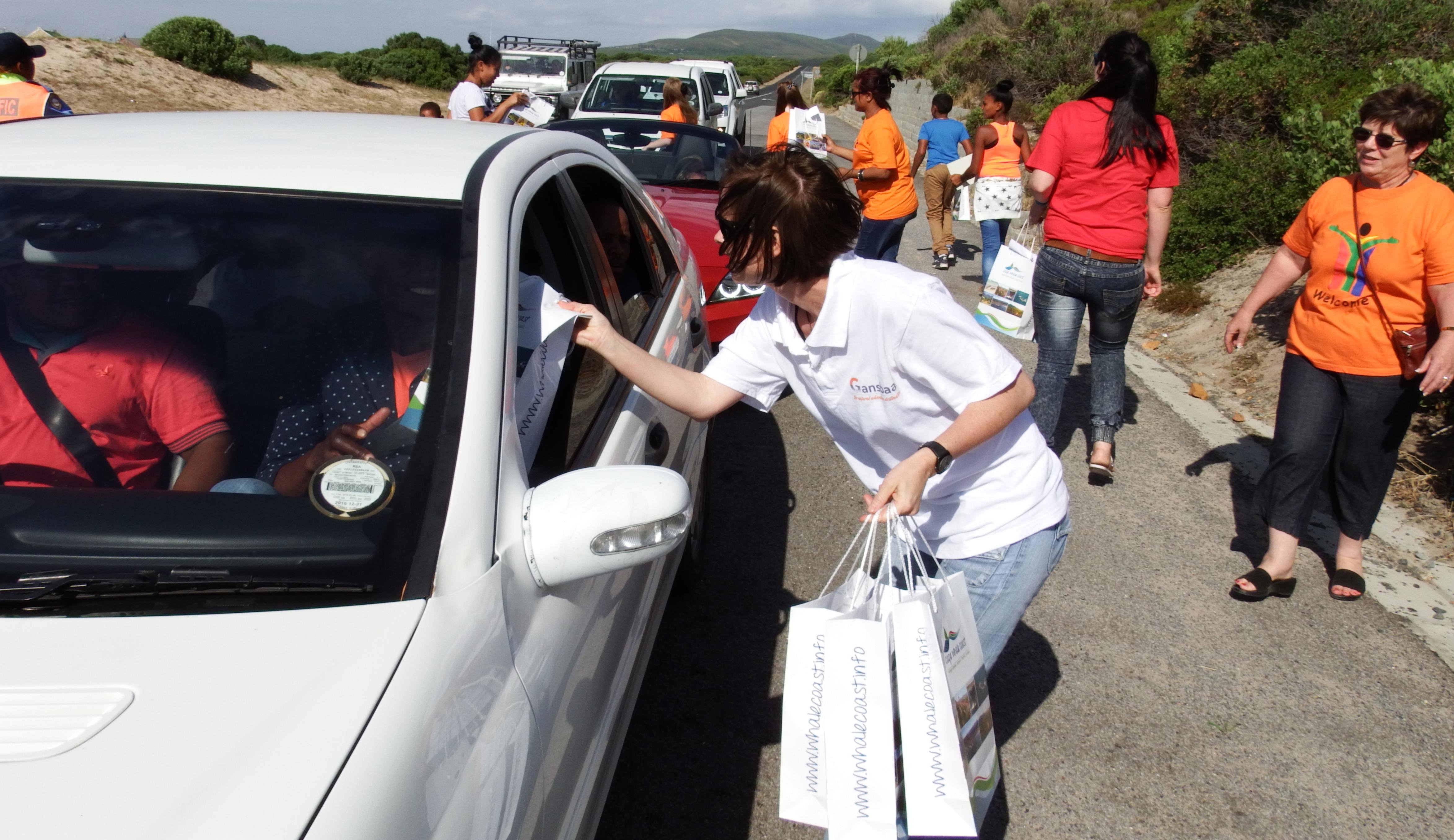 Dan ry hulle al waaiende voort met besoekersinligting van besienswaardighede, ‘n “frispie” vir die kinders en dies meer. “Dis waarom ek altyd na Gansbaai sal terugkeer - dis vir die vriendelikheid van die mense,” het een dame-bestuurder gesê. Vanjaar het Gansbaai Toerisme sommer ‘n hele paar jongelinge gekry om te kom help. Hulle het dit terdeë geniet om met ‘n waaiende “Welcome” bordjie kostelike danspassies langs die pad uit te voer. Gansbaai is gedurende November vanjaar as ‘n Wêreldklas Verantwoordelike Toerisme Bestemming in die Wêreld Handelsentrum in London aangewys - ‘n onvergelykbare en trotse prestasie.