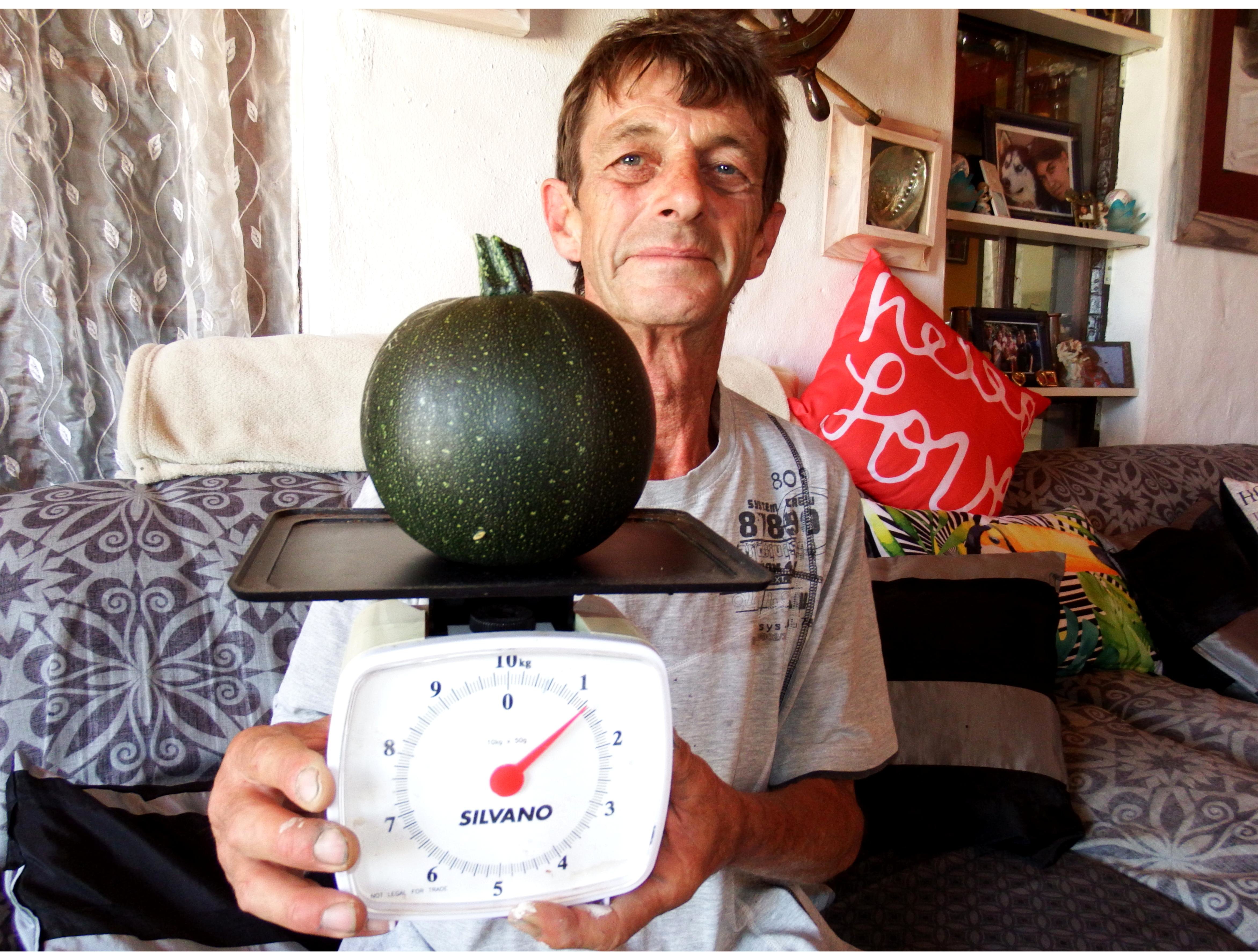 Sy eggenote, Lente sê Thys is ‘n ywerige groente-kweker in sy klein groentetuintjie, maar het ook al enorme pampoene en ander groentes suksesvol daar gekweek.