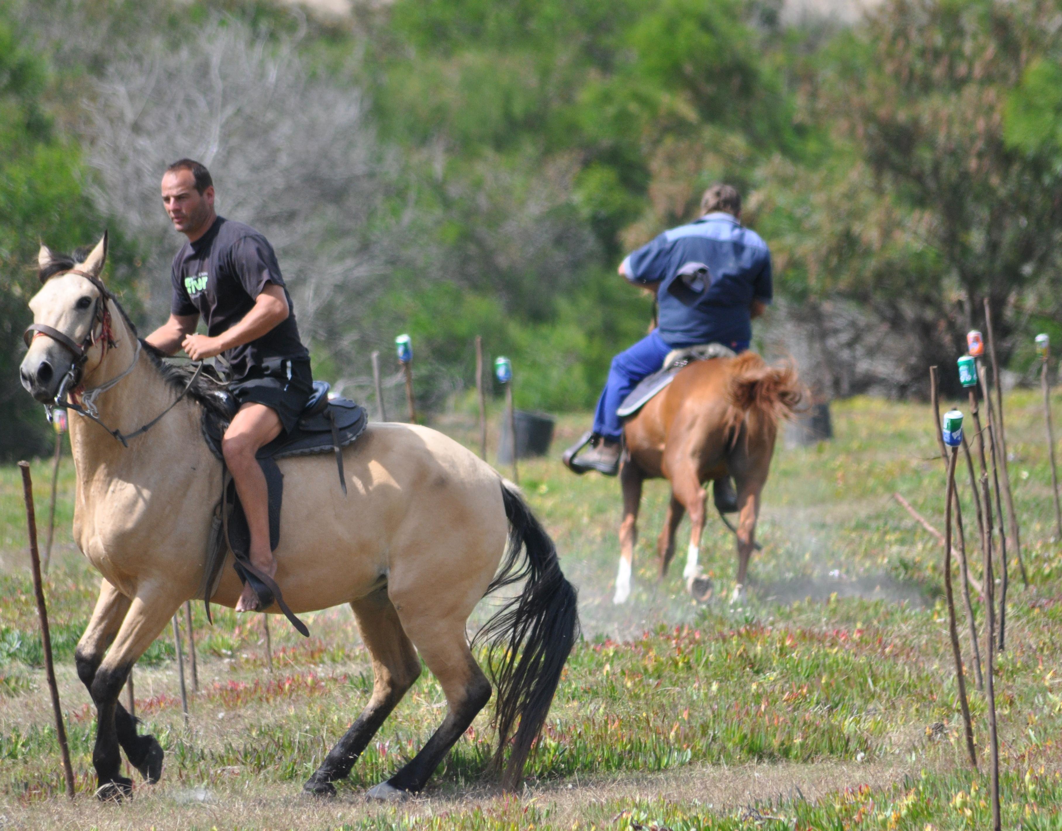 Hier kon ons die ruitervernuf van altwee duidelik sien, welgedaan julle! Net voor middagete was dit die toeskouers en deelnemers se beurt om te kom help varkie vang, ‘n vreeslike senuweeagtige speenvarkie is losgelaat en pappas, mammas en kinders is almal agterna, want die een wat hom vang, kon hom hou! Dit was groot pret en vark se kind het oploop gesit om heelwat later platgeduik te word deur Japie. Toe is daar gebreek vir middagete en ‘n “tee break” by Rusty’s.
