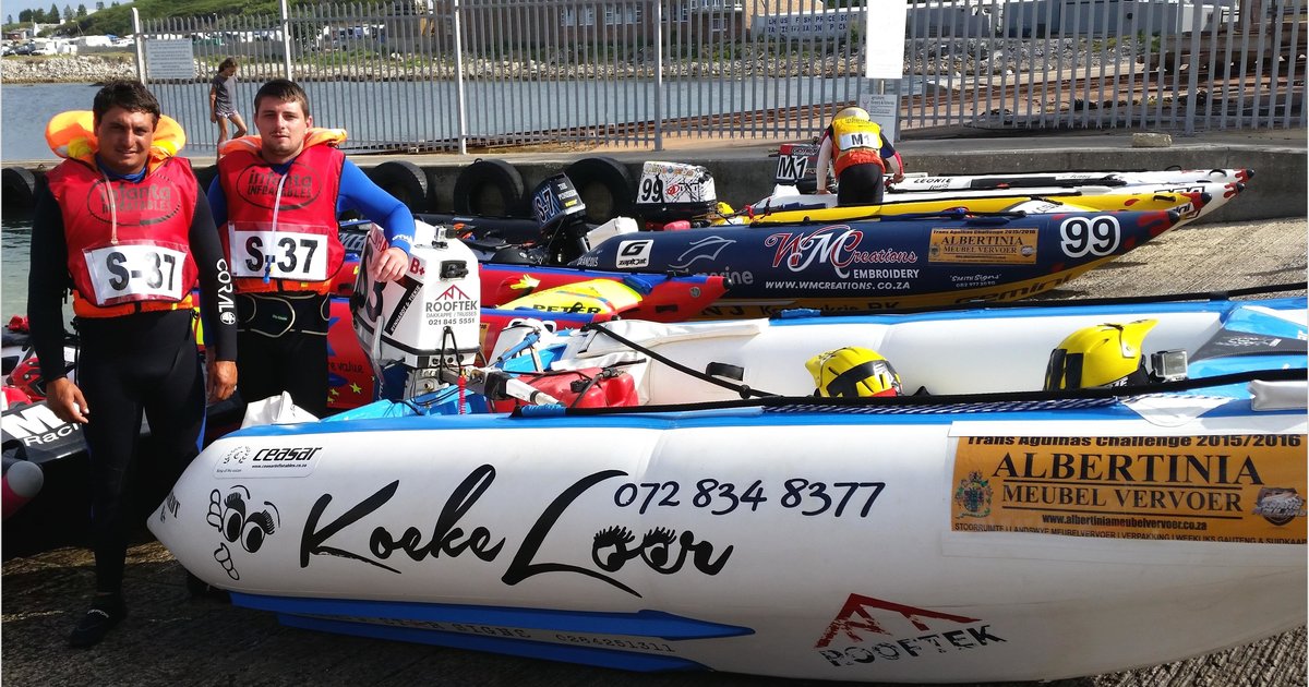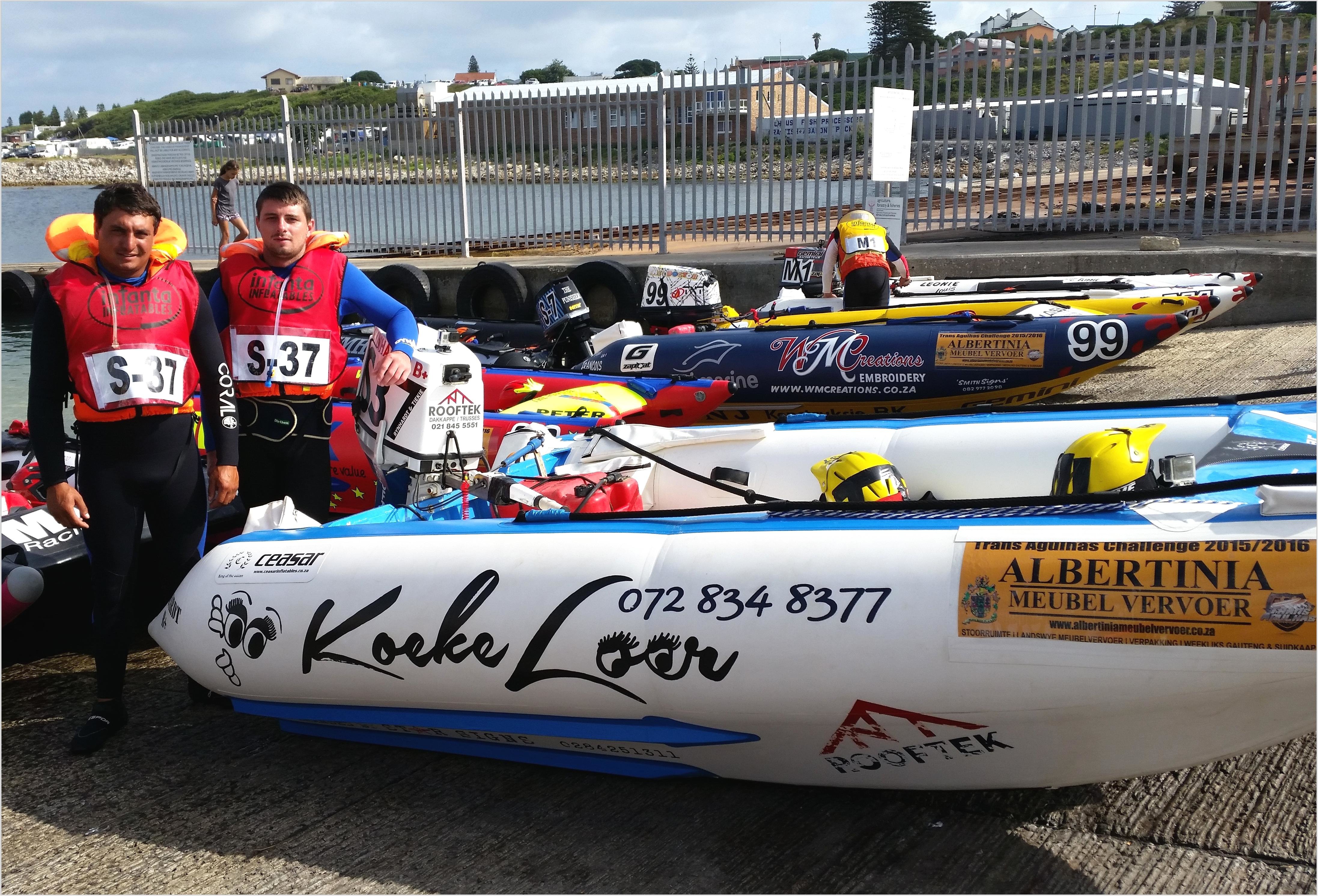 Nog ‘n bekende in die omgewing wat ‘n knap deelnemer aan die onlangse en uitmergelende Trans Agulhas Rubberbootwedren was, is Rynhardt Koekemoer (23) van Pearly Beach en ‘n oud-skolier van Laerskool Gansbaai. Hy was die pilot van die boot, Koekeloer, en dit was sy 3de wedren wat hy voltooi het. Voorheen het hy onderskeidelik 3de en 4de geëindig. Tiekie Morkel (24) van die Strand, was Rynhardt se co-pilot. Tiekie se ouers het ‘n vakansiewoning in Pearly Beach en dié twee jongmanne is reeds sedert kinderjare vriende. “Die afgelope Trans Agulhas was weer vol uitdagings,” het Rynhardt se pa, Jan Koekemoer gesê.