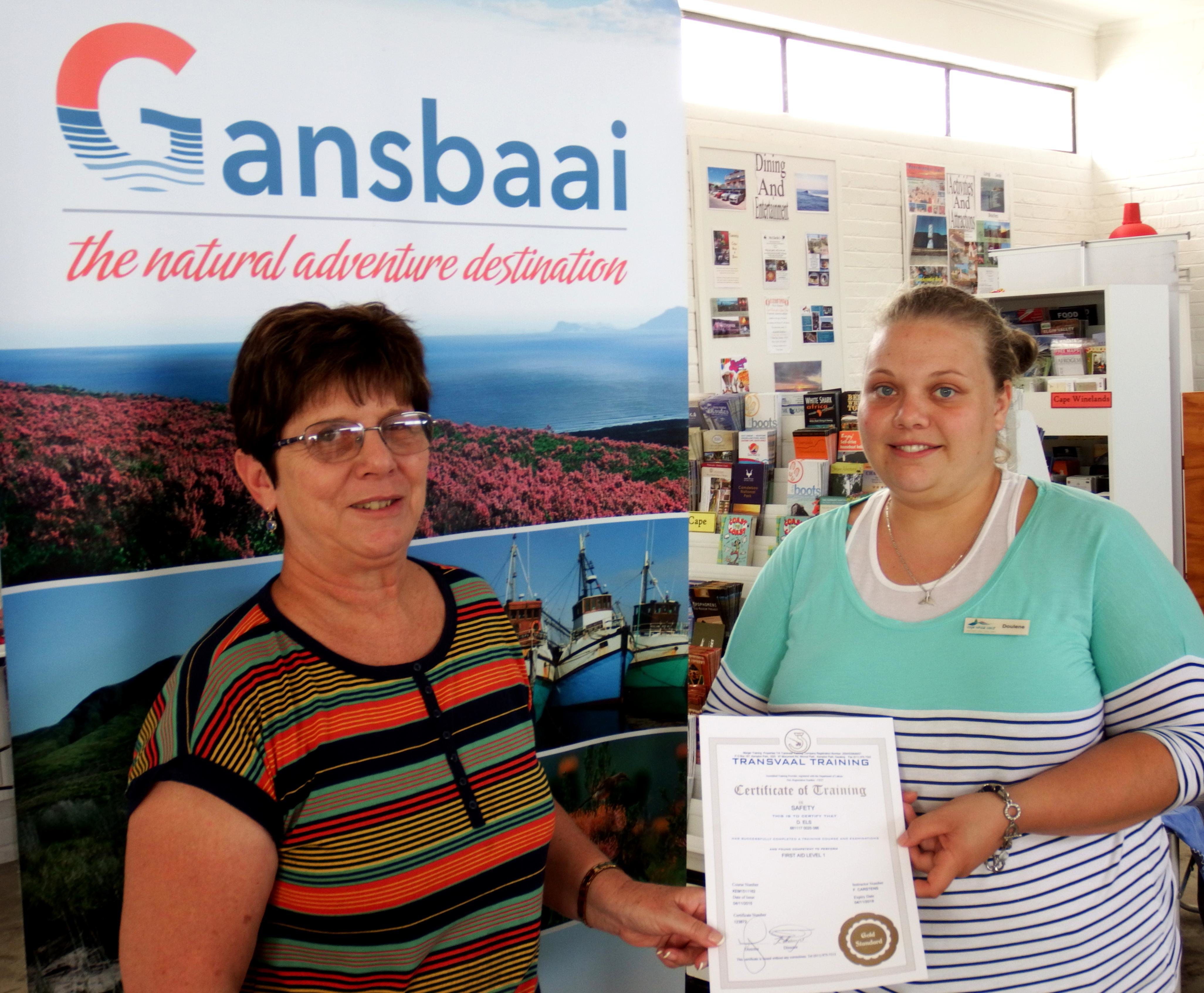 Doulene Els, een van Glenda Kitley, Bestuurder: Gansbaai Toerisme se regterhande, het uitstekend met haar Noodhulpkursus November verlede jaar gedoen.