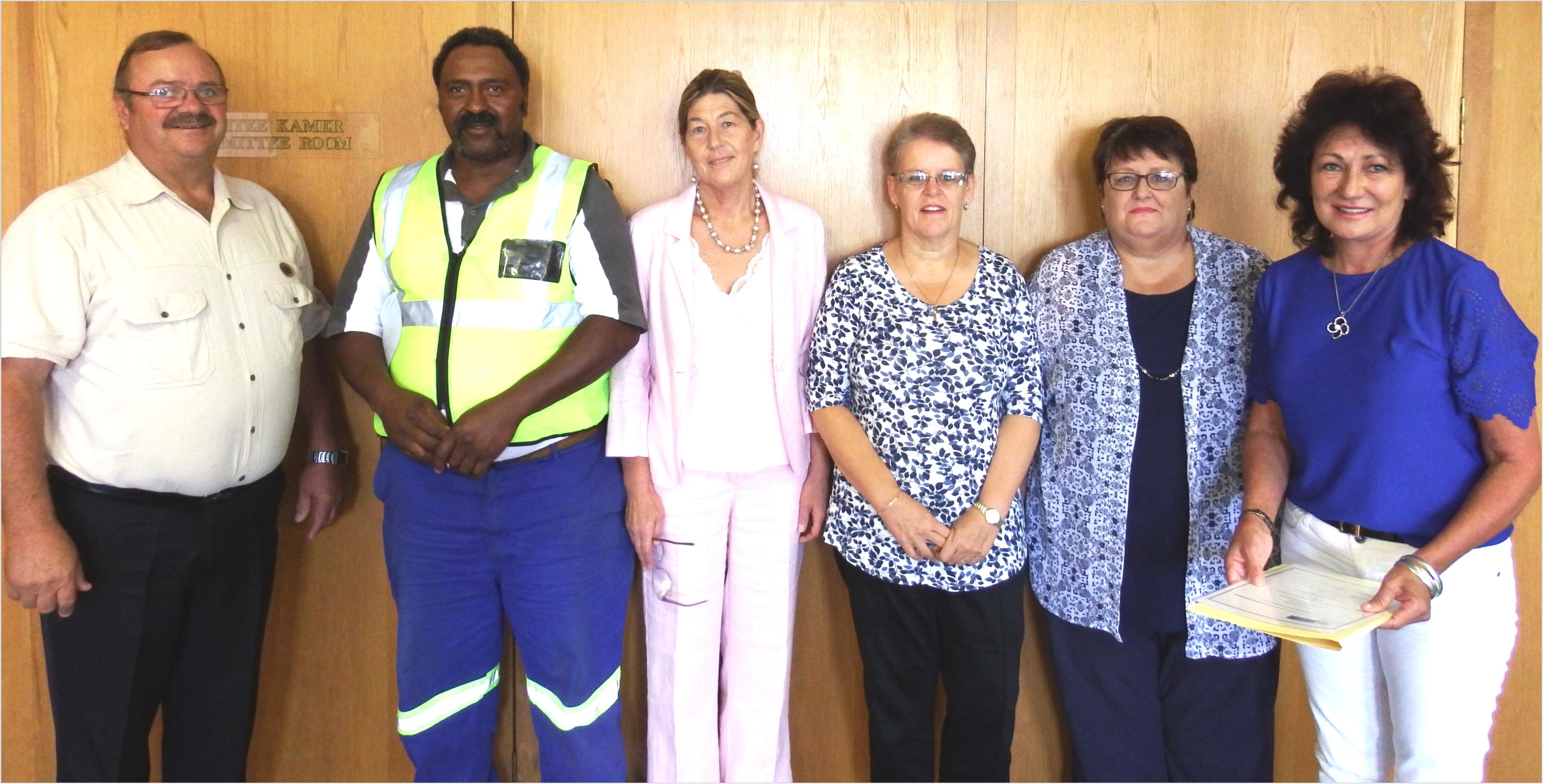 Tydens ‘n Wyksvergadering van Wyk 2 is vier personeellede gelukgewens met etlike jare se diens as munisipale amptenare. Hulle is: Hantie Vermeulen (33 jaar - Finansies); Sharman Geldenhuys (30 jaar - Biblioteekdienste); Sanet Otto (30 jaar - Kassiere); David Pieters (20 jaar - Riool Afdeling).