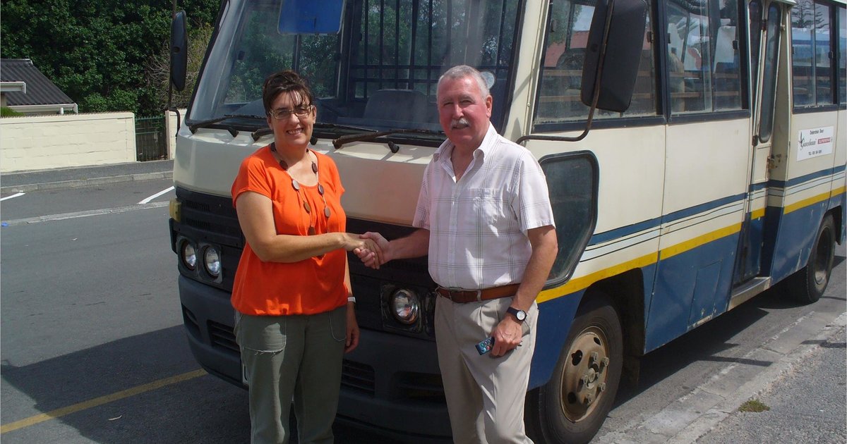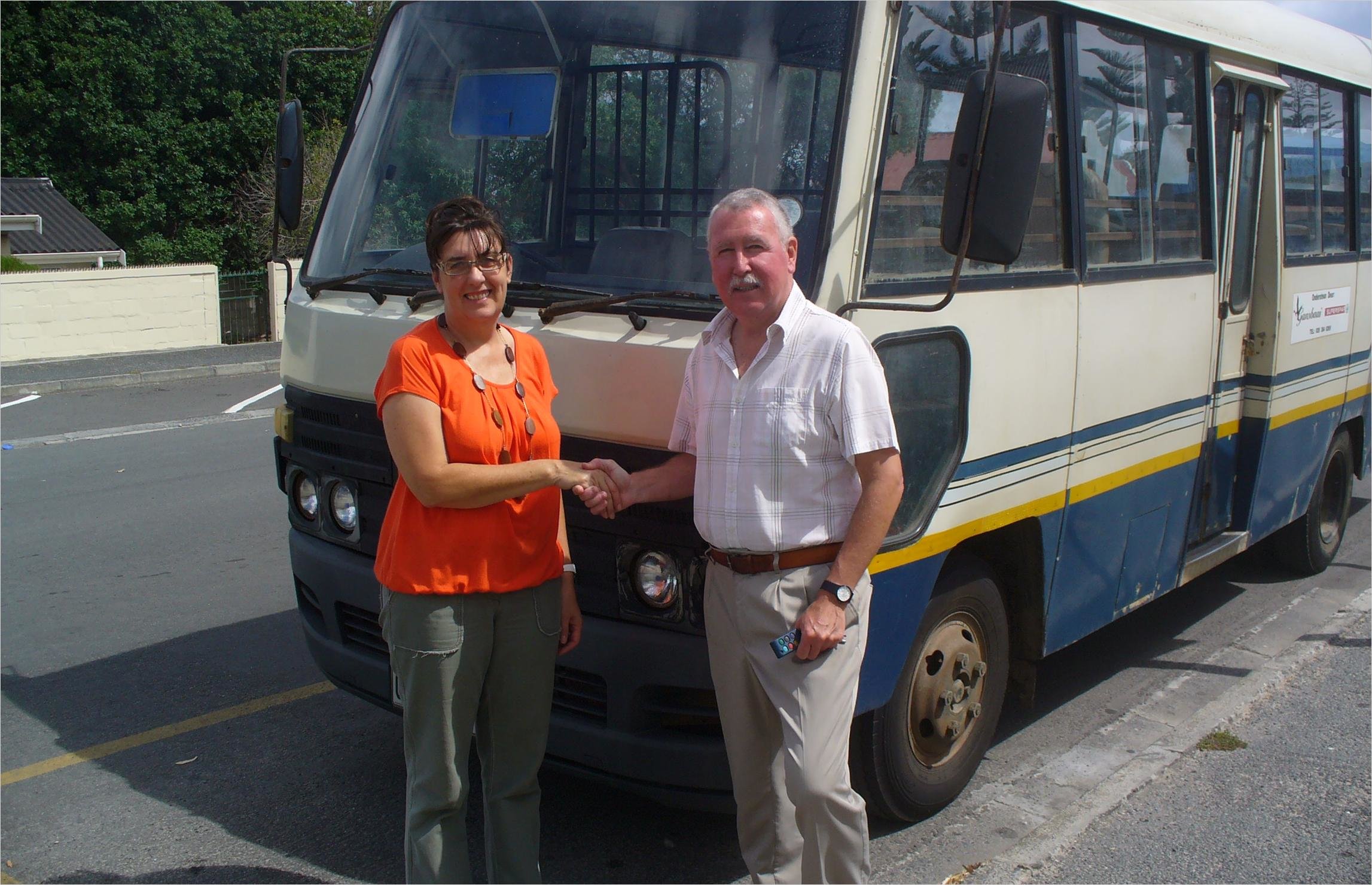 Volgens me Lea Harmse, die voormalige bestuurder van die skoolbus, het die Baardskeerdersbosgemeenskap besluit om die skoolbus aan Laerskool Gansbaai te skenk, aangesien die skool destyds ‘n donasie gegee het as hulp met die aankoop van die bus. Op die foto oorhandig me Harmse die skoolbus aan mnr Van der Merwe.