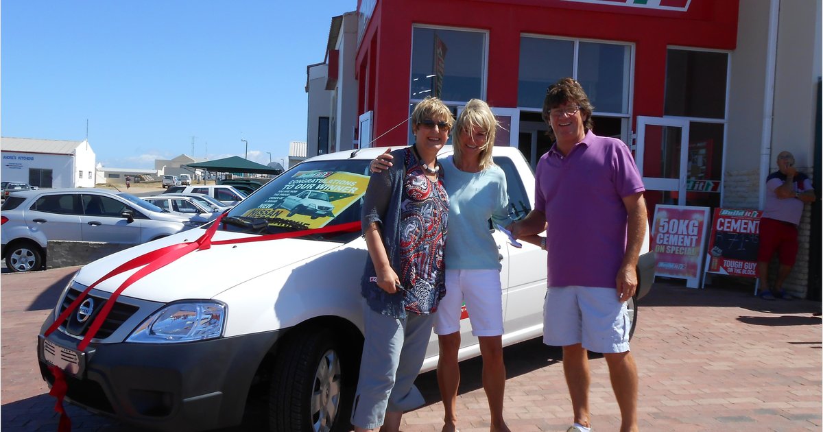 Sandra Otto was die gelukkige wenner en was die ene opgewondenheid oor haar splinternuwe bakkie wat sy gewen het. Eddie en Silvana Burger, eienaars van Build It Gansbaai, het eers gesorg vir die gesellige klink van sjampanje-glasies saam met Sandra om haar groot dag saam met haar te vier. Daarna het Eddie en Silvana na buite gegaan waar hulle die sleutels aan Sandra oorhandig het. Eddie en Silvana is tans besig met voorbereidings vir die opening van hulle nuwe en spoggerige Build It in Hermanus.