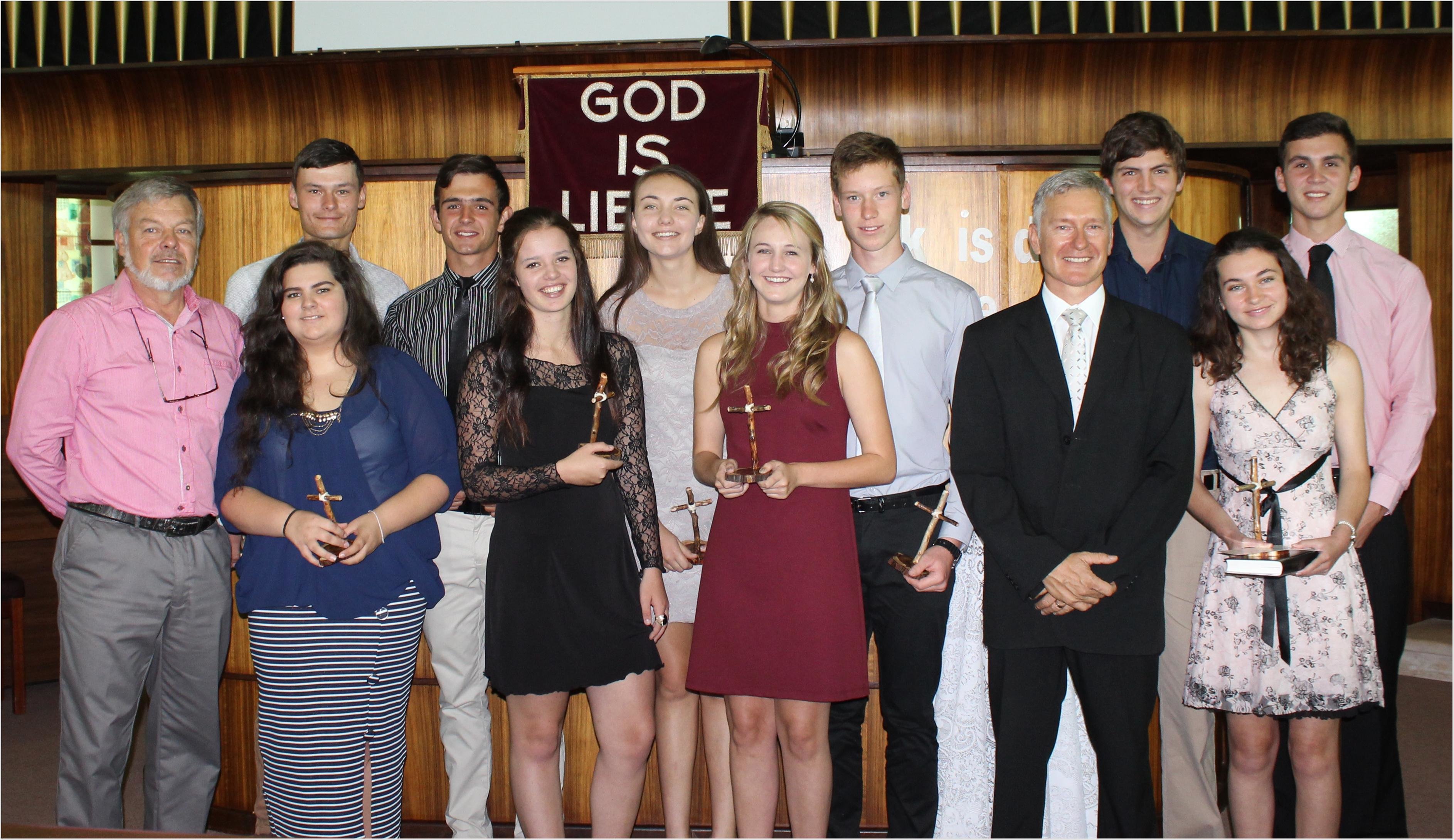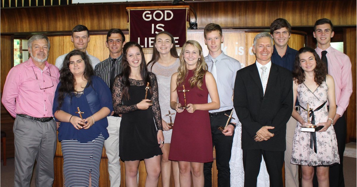 Dit was terselfdertyd die jaarlikse Belydenisaflegging van Geloof deur suksesvolle katkisante en ds Kotze het sy boodskap aan die gemeente en die groep jongmense op 2 Kor 3 baseer. “Hierdie gedeelte sê vir ons die Bybel is soos ‘n spieël en wanneer ons in die spieël van die Woord kyk, gebeur ‘n vreemde ding. In ‘n gewone spieël sien ons onsself, maar hoe langer en intenser ons in die spieël van die Woord kyk, hoe meer word ons verander na die beeld in die spieël - Jesus Christus.” Vanjaar se groep “nuwe” lidmate is (alfabaties): Alco Kotze (ds Willie Kotze se seun), Anthea Goedde, Bianca Schoonwinkel, Chanelle Dreyer, Daneen Vermeulen, Henlo Smit, Kobus Truter, Luan Fourie, Monet van Deventer en Mynard van Niekerk. Dit is die gebruik in die NG-gemeente dat die leraars ‘n Gr 8 groep neem en die pad met hulle deurstap tot aan die einde van hulle finale katkisasie-jaar, waarna hulle dan Belydenis van Geloof aflê. ‘n Ouderling, in hierdie groep se geval Hennie Prinsloo, hanteer die groep saam met die leraar. Hennie is dus bekend aan hierdie groep sedert hulle Gr 8-jare. Dr Bobo van Zyl was die verantwoordelike leraar, maar het gedurende 2015 op langverlof gegaan en daarna afgetree. Hennie het die groep op sy eie tot by die groot dag in hul lewens geneem.