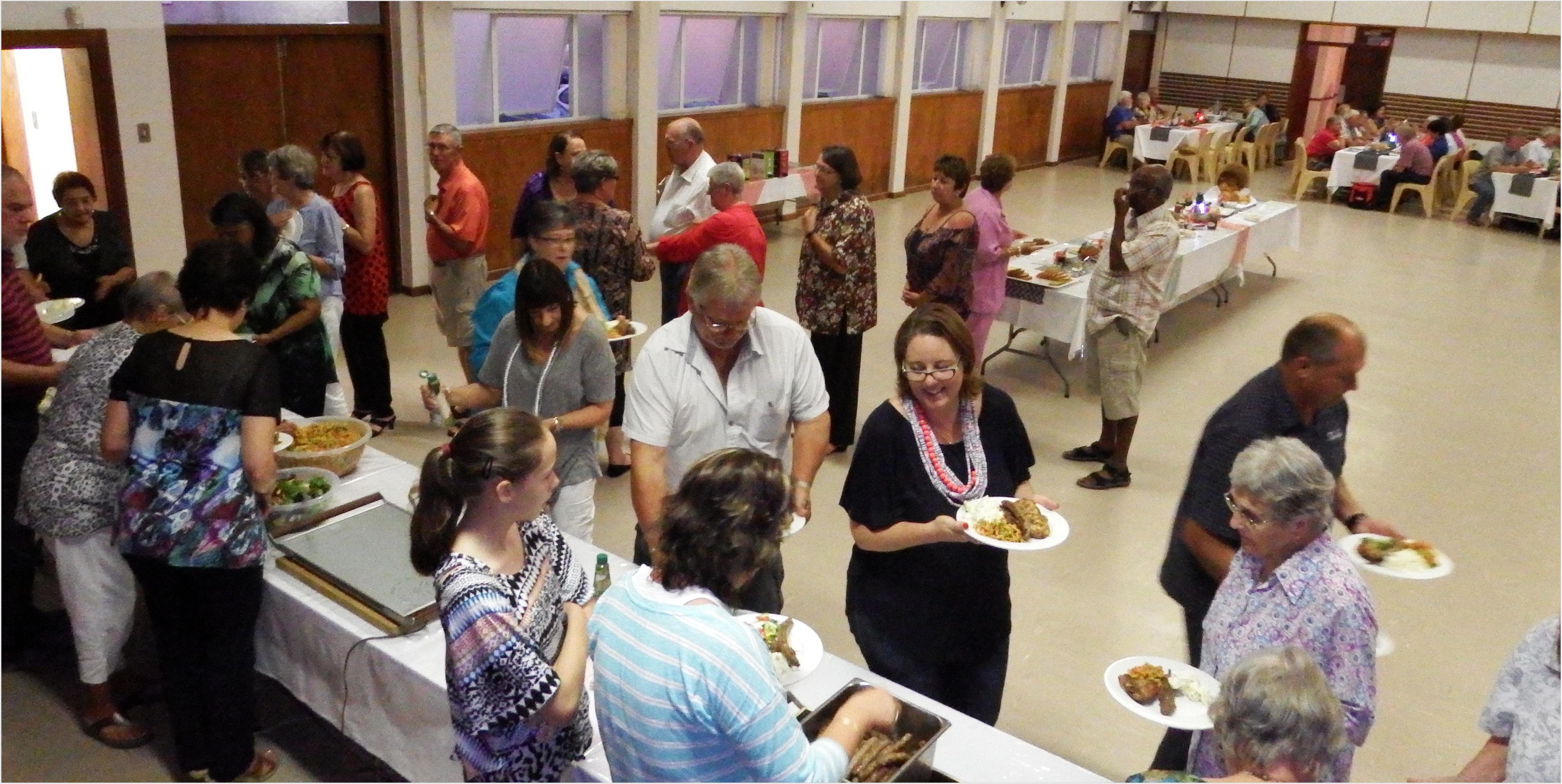 Die genooides kon ontspanne by netjies-versierde tafels aansit, met ‘n smaaklike ete van braaivleis, sosaties, wors en slaaie, asook egte roomys agterna. Ds Dirk van Dyk het op gepaste wyse geopen en Linda het die verwelkoming en bedankings, te veel om op te noem, behartig. Daan Victor, Leierouderling, het die werkers namens die Kerkraad bedank. Linda het spesiaal na haar Bestuurspan verwys wat haar ondersteun het, naamlik Ilse Klopper, Maryke van Rensburg, Petro Trautman en Rita Pio. Daarna is daar gesellige saamgekuier en geëet, met al die swetende hardewerk agter die rug.