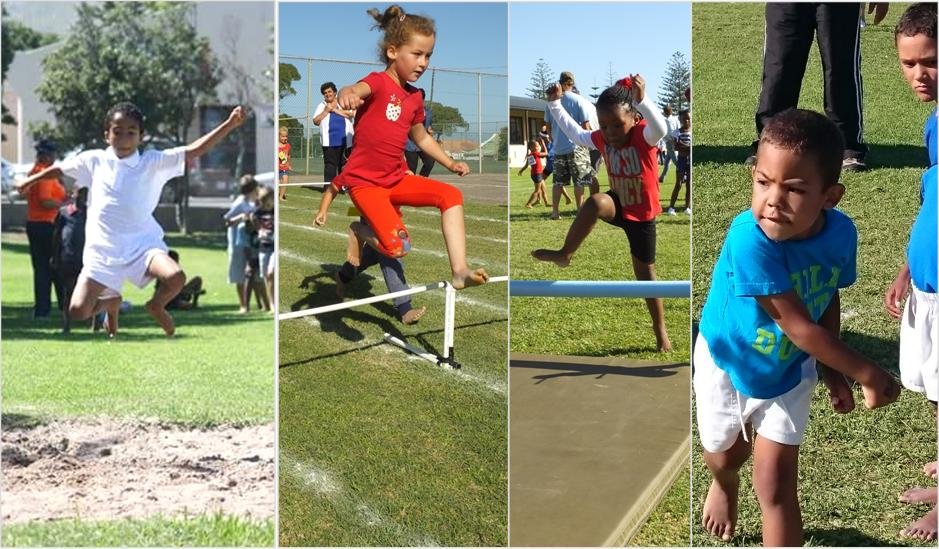« Hoogspring - Matras en poolnoodle, Gewigstoot – Boontjie sakkies, Hekkies - Tuisgemaakte hekkies wat wissel van 30cm – 55cm hoog, Spiesgooi – aangepasde besemstok, Naellope – 50m tot 100m, Langafstand- 200m, Verspring en Aflos.