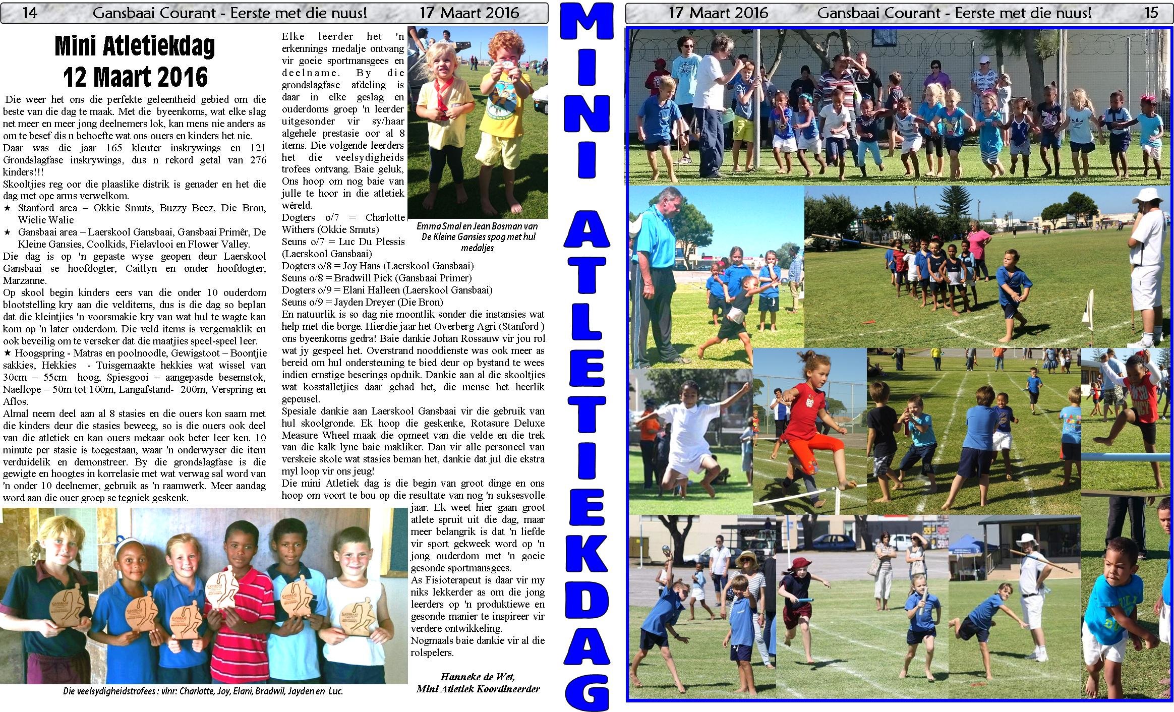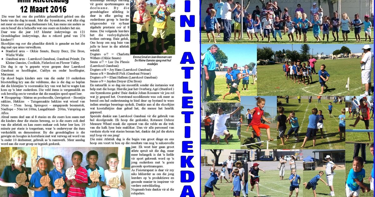 Die mini Atletiek dag is die begin van groot dinge en ons hoop om voort te bou op die resultate van nog 'n suksesvolle jaar. Ek weet hier gaan groot atlete spruit uit die dag, maar meer belangrik is dat 'n liefde vir sport gekweek word op 'n jong ouderdom met 'n goeie gesonde sportmansgees.
