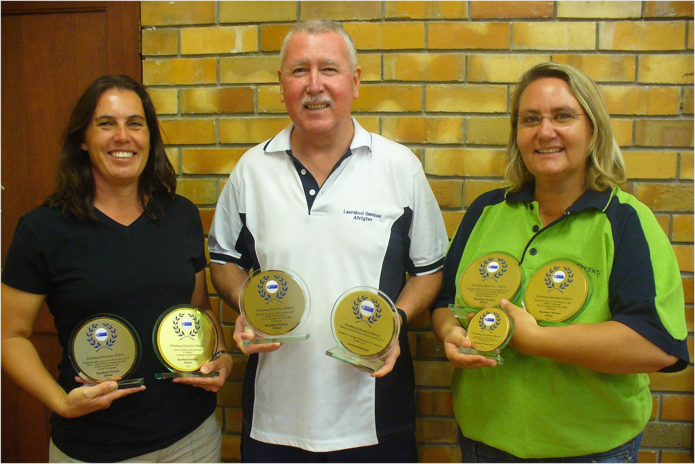 Dit is die 3de agtereenvolgende jaar dat Laerskool Gansbaai hierdie prestasies behaal! Vir hierdie volgehoue prestasies die afgelope drie jaar, het Laerskool Gansbaai weggestap met eersteplek trofeë vir Volgehoue Beste prestasies in Wiskunde en Tale in Graad 3, asook Volgehoue Beste prestasie vir Wiskunde Graad 6 vir die afgelope 3 jaar. ‘n Totaal dus van 6 trofeë vir ’n Eerste plek en 1 trofee vir ’n Tweede plek.