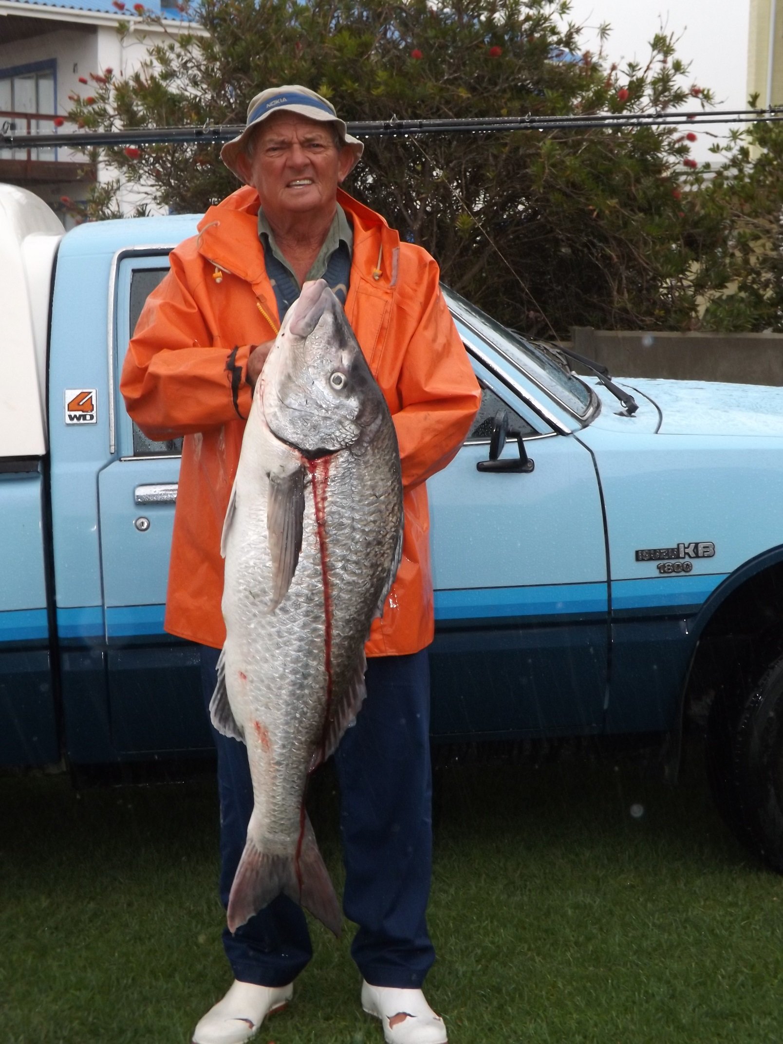 Hierdie 1m14cm steenbras met ΄n gewig van 17kg is met ΄n mengsel van bloedwurm en prawn gevang. Herberg-aan-See het lekker aan hierdie vangs gesmul.