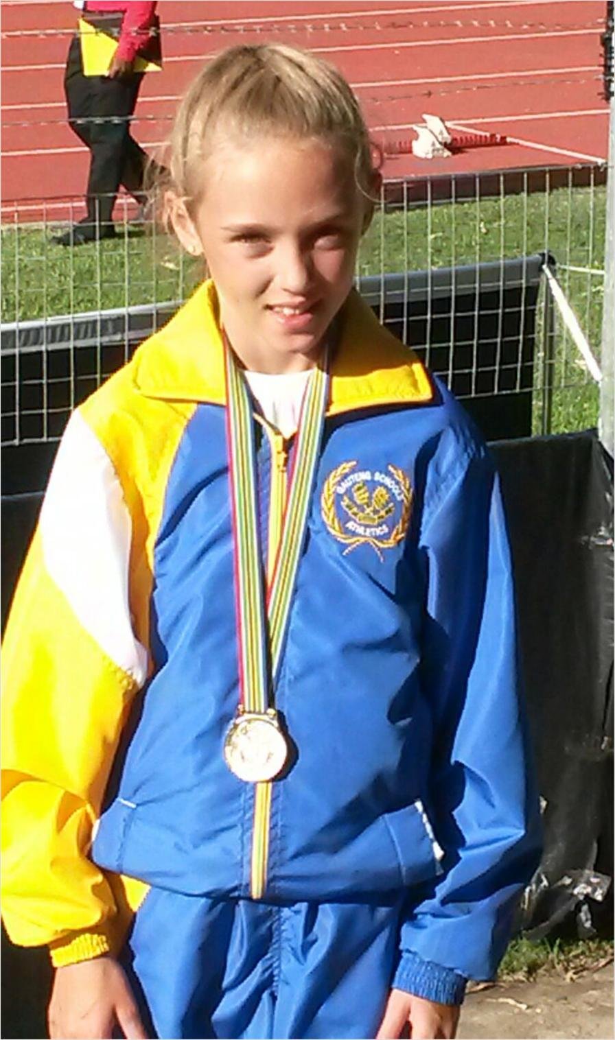 Thys en Linda Cilliers van Franskraal kan met reg trots wees op hul kleinkind, Marli Dimond (9) van Laerskool Risiville, Vereeniging. Marli was een van 5 atlete in haar skool wat op 11 en 12 Maart vanjaar aan die SA Atletiek Kampioenskappe in Port Elizabeth deelgeneem het. Sy het ‘n goue medalje vir haar eerste plek in die 1,200m dogters o/10 ingepalm. Haar tyd van 3:53 is ‘n verbetering van 3 sekondes van die ou SA Rekord. Marli is ook as die Beste Baan Atleet van die dag aangewys. Prestasies soos hierdie laat nie net ouers se harte met trots swel nie, maar veral dié van grootouers. Thys en Linda, ook bekend vir hul puik reëlings jaarliks met die Kersmark, vertel dat hulle baie trots is, maar ook dankbaar dat hulle daardie vreugdevolle dag saam met Marli en haar ouers, Martin en Joelinda Dimond kon beleef. Linda vertel dat die wedloop iets besonders was. Marli het met die wegspring vanaf die 7de plek na die 1ste plek tydens die laaste 100m van die wedloop geveg. “Joelinda het ons vertel dat sy dié betrokke oggend in hulle Dagstukkie vir Marli gelees het die Here is die leeu wat haar sal dra…”
