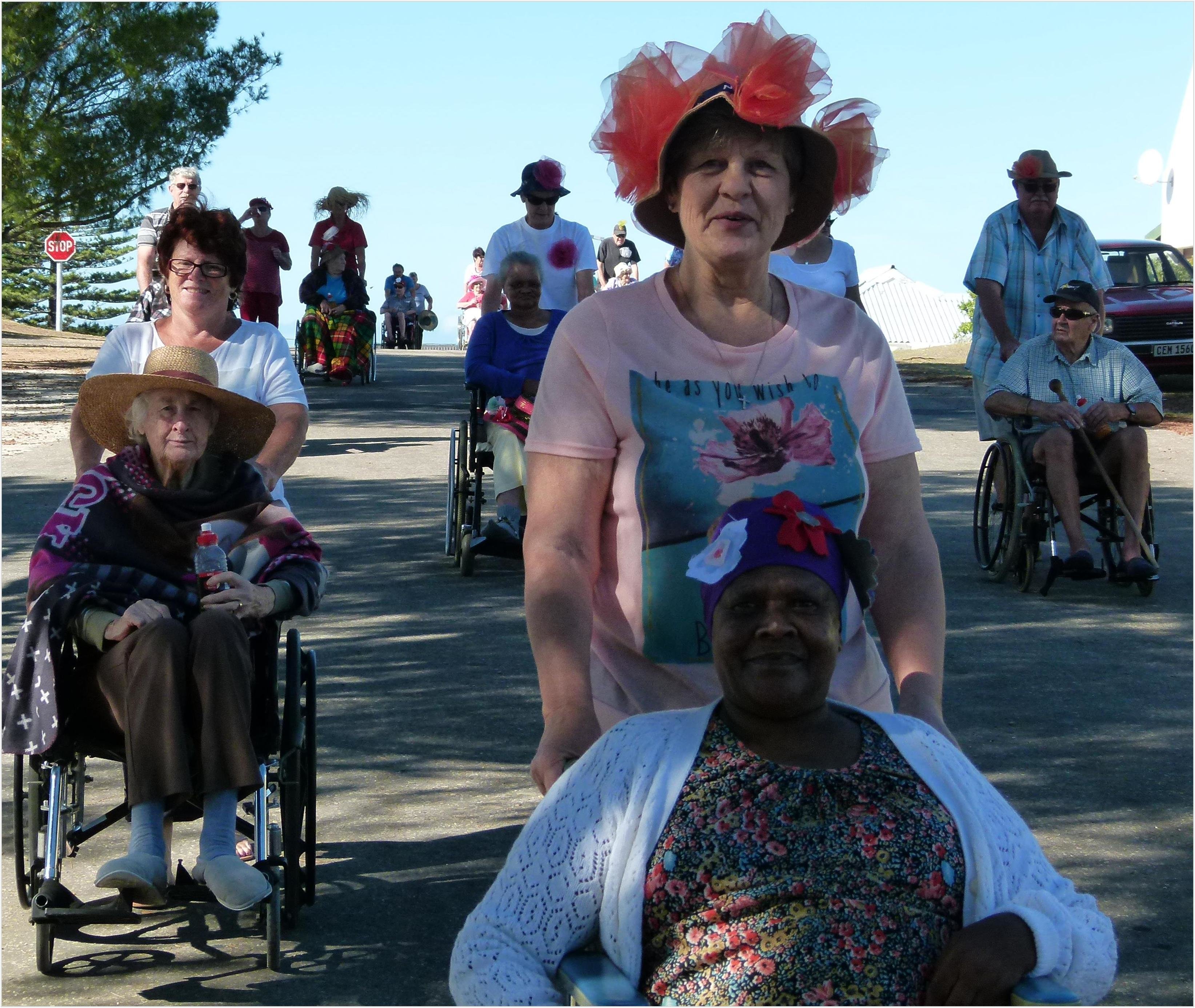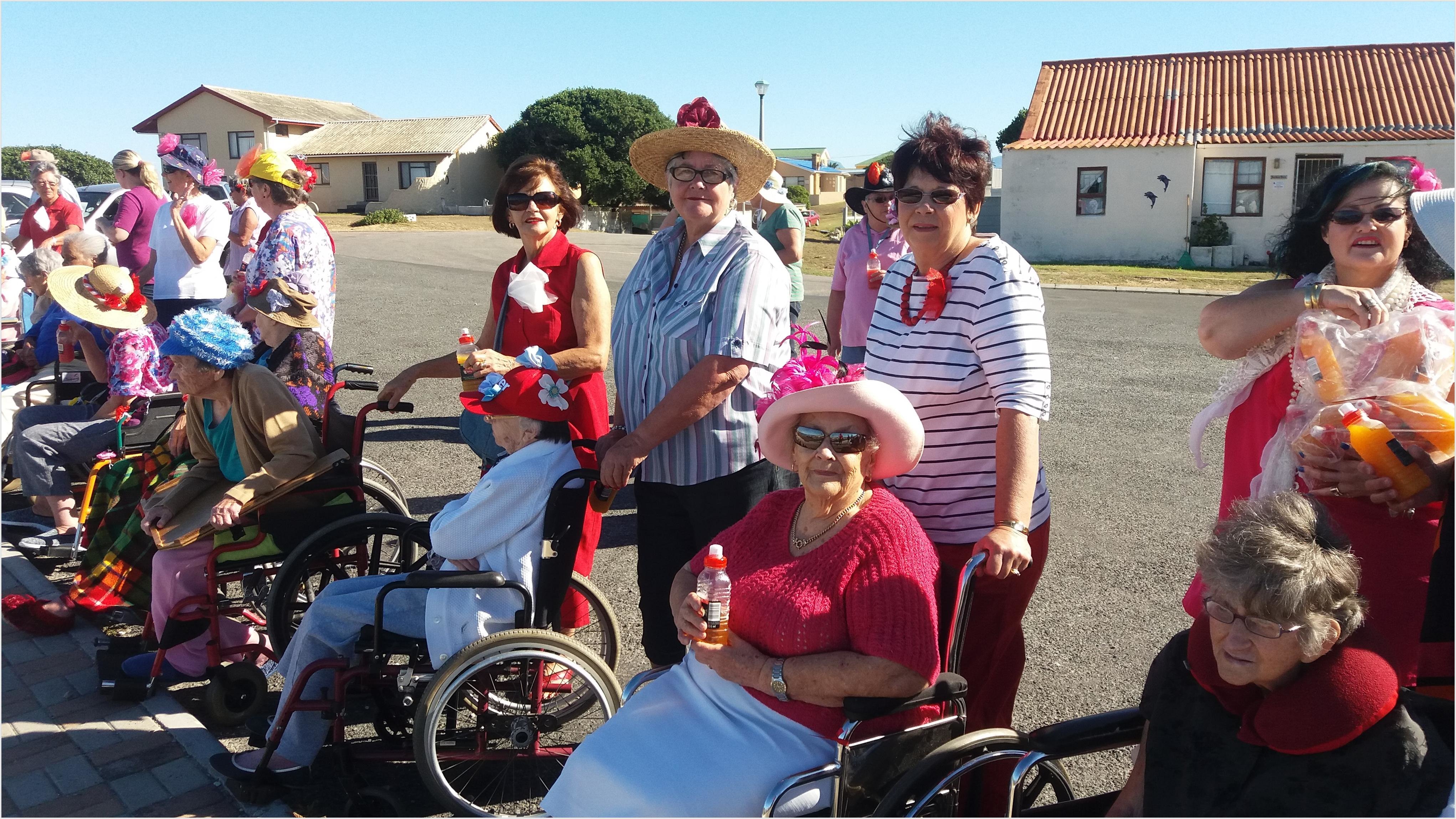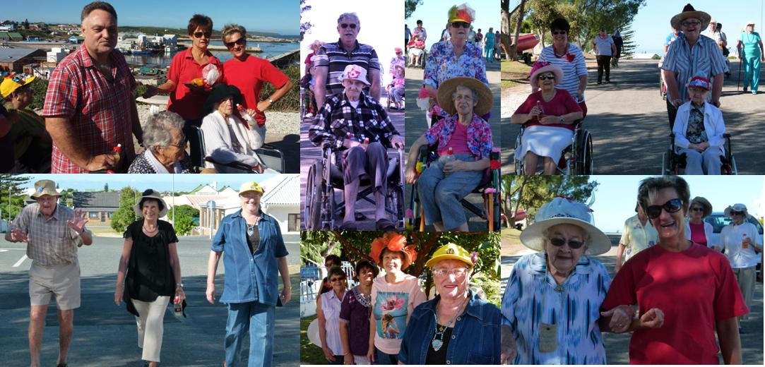 Gansbaai Goue Hande en ander vrywilligers het op 9 Maart vanjaar Herberg-aan-See (HaS) se inwoners op ‘n interessante uitstappie “strate toe geneem”. En nie sommerso nie - hulle was behoorlik “opgesmuk” met blomme en veral blomme-hoede wat hulself gemaak het.
