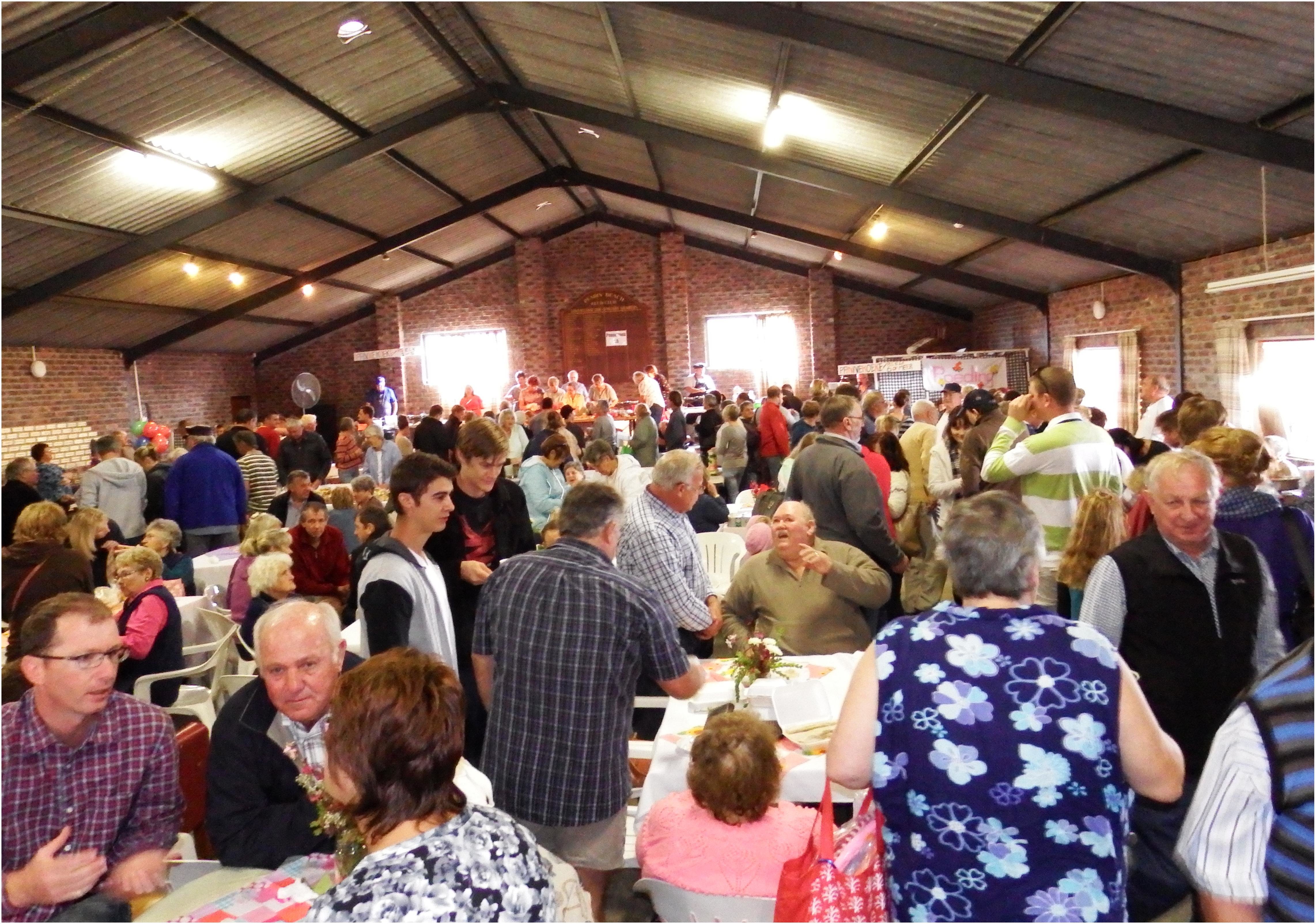 Daar was ongetwyfeld te veel te drinke en te ete, met velerlei snuisterye en naaldwerk, plaasprodukte, pasteie, gebraaide hoender, potjieskos (4 soorte), worsbroodjies en pannekoeke by die dosyne. “Pastoor Frikkie Zeelie het die pannekoeke so een na die ander die lug in laat vlieg, met sy helpers wat ook nie agtergebly het nie,” sê Petrus. Die kafee met sy vele lekkernye het ook bygedra tot te veel lekkertes om op te noem.