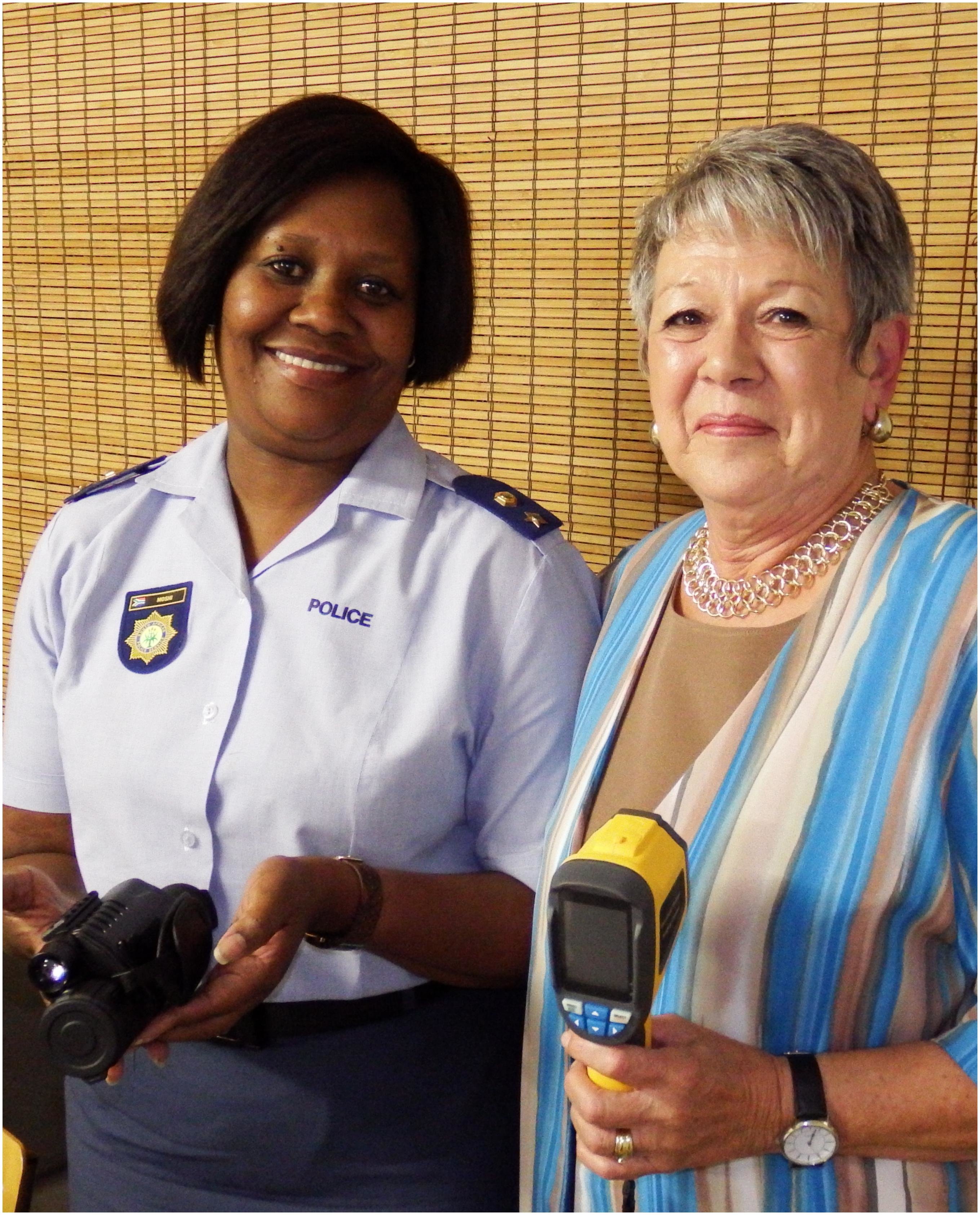 Altwee het op Woensdag, 13 April 2016 in die Hermanushof verskyn, met borgtog wat geopponeer is, aangesien hulle vorige oortreders is. “Dit is so dat inbrake die laaste tyd ernstig toegeneem het, veral in Pearly Beach,” sê Sp.Kapt Danie Rautenbach van Gansbaai SAPD se Speurtak. “In die meeste van die gevalle is dit vakansie-wonings, selfs dié met alarmstelsels, wat geteiken is.” Hierdie deurbraak wat gemaak is, sluit ook die pleeg van ander misdade, onder ander dwelmhandel, in. Ná die ondervraging van genoemde aangeklaagdes, is die goeie nuus dat enkele groeperinge geïdentifiseer is wat nog ondervra moet word. Dit is ook bevestig dat daar gedurende die afgelope 8 maand 16 arrestasies ten opsigte van inbraak, besit van vuurwapens en dwelms en gesteelde eiendom in Eluxolweni gemaak is, wat ‘n pragtige prestasie is, ondanks vele klagtes deur inwoners van misdaadvoorvalle. Gansbaai SAPD het gedurende die Desemberseisoen met Pearly Beach Belastingbetalers Vereniging in gesprek getree. “Ons het hulle op die noodsaaklikheid van foto’s van die inhoud van hul wonings gewys, selfs beddegoed en gordyne, met relevante item- en modelnommers wat neergeskryf moet word,” het Sp.Kapt Rautenbach gesê. “Ongelukkig word dit steeds nie gedoen nie.” Hy sê ook dat indien daar klagtes oor SAPD-lede is wat nie vinnig reageer nie, dit by die Stasiebevelvoerder aangemeld moet word. Hy verduidelik dat ‘n speurder ‘n misdaadtoneel binne 24 uur moet besoek, veral met die oog op vingerafdrukke of bloedmonsters vir forensiese toetse. In hierdie verband rus daar ook ‘n verantwoordelikheid op klaers om seker te maak misdaadtonele ongehinderd gelaat word totdat ‘n speurder opdaag. Die publiek word weer eens versoek om verdagte persone te alle tye aan 10111 te rapporteer. Tydens ‘n onlanse Gansbaai Polisiëringsforum (GPF) vergadering het die voormalige voorsitter van die GPF, Lucille Mangiagalli (tans voorsitter van die Overbergstreek), enkele gespesialiseerde toerusting aan Gansbaai SAPD se Stasiebevelvoerder, Lt.Kol Moshi, namens die GPF oorhandig. “Hierdie toerusting het ten doel om jul ondersoektake te vergemaklik,” het Lucille gesê.