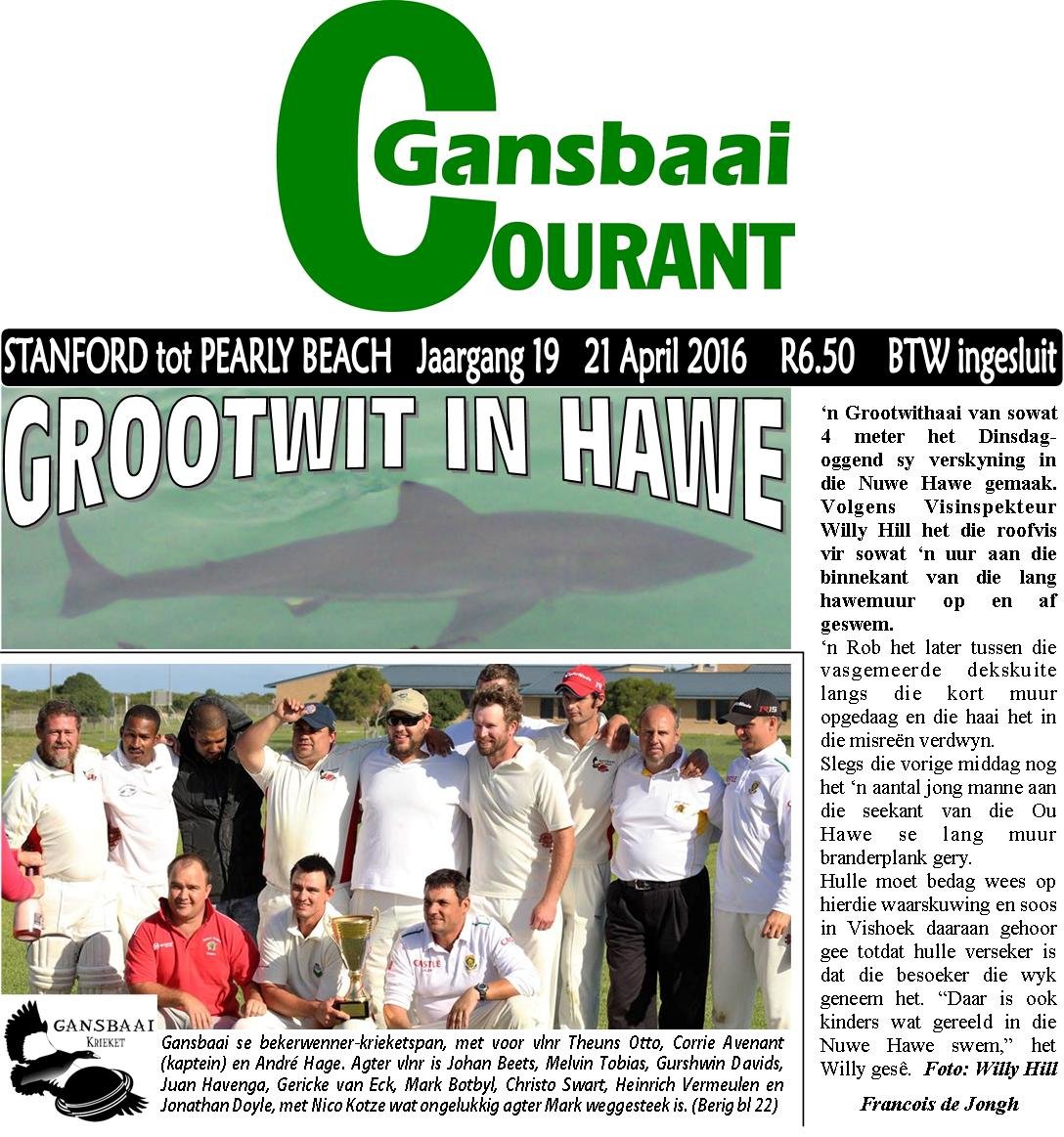 Gansbaai Courant provides the Gansbaai community with the latest in news and interesting stories about and around the area.