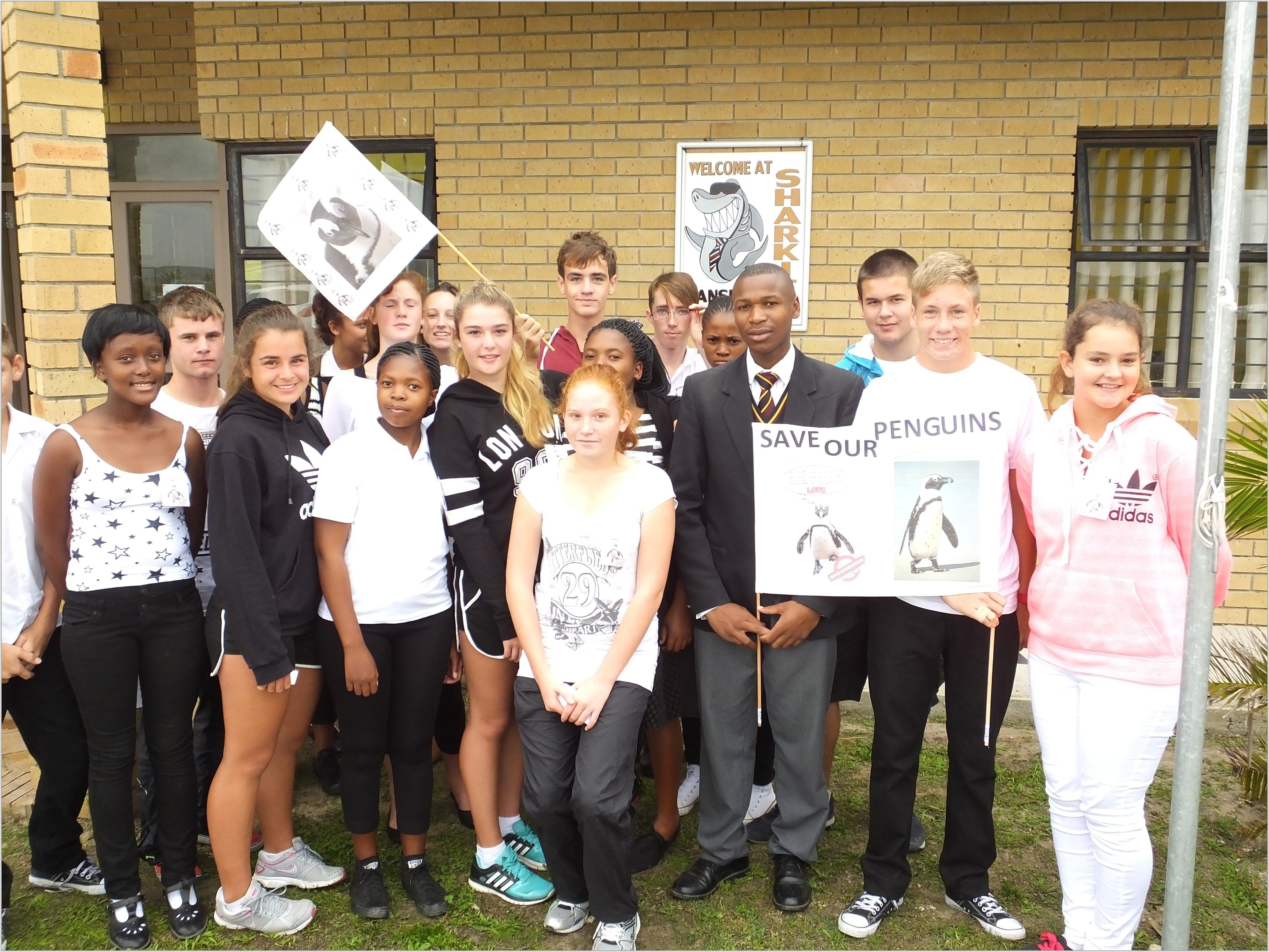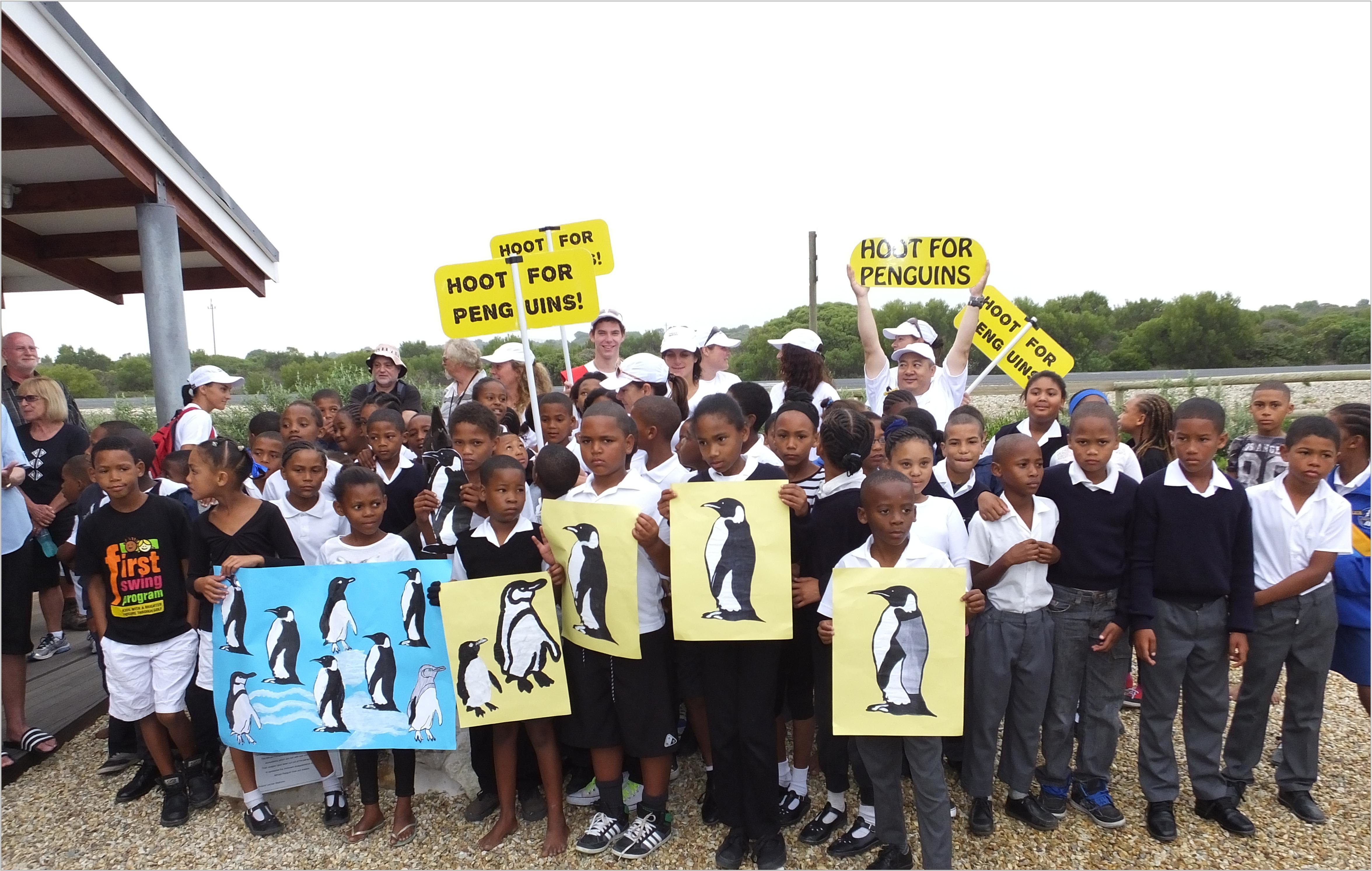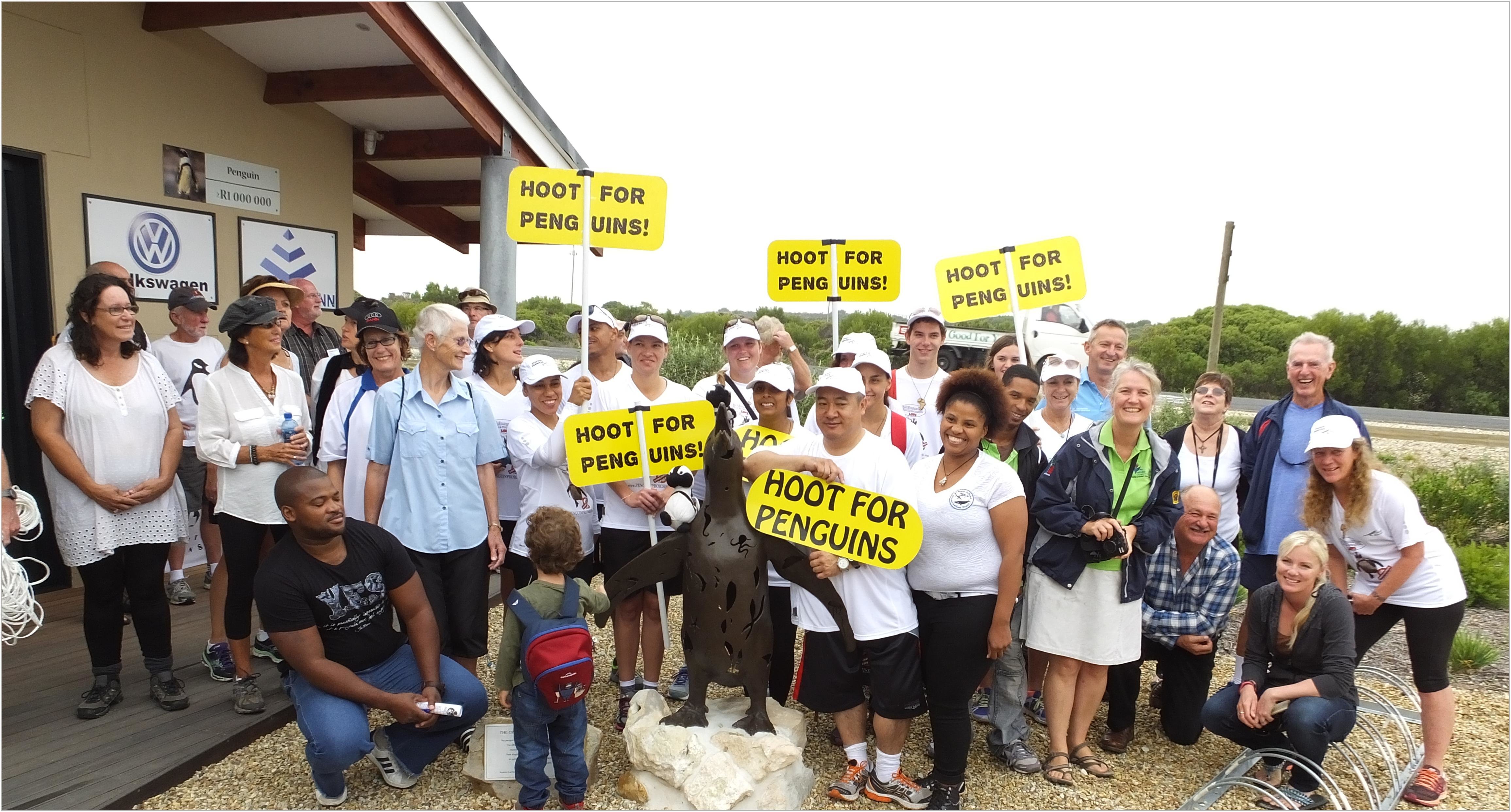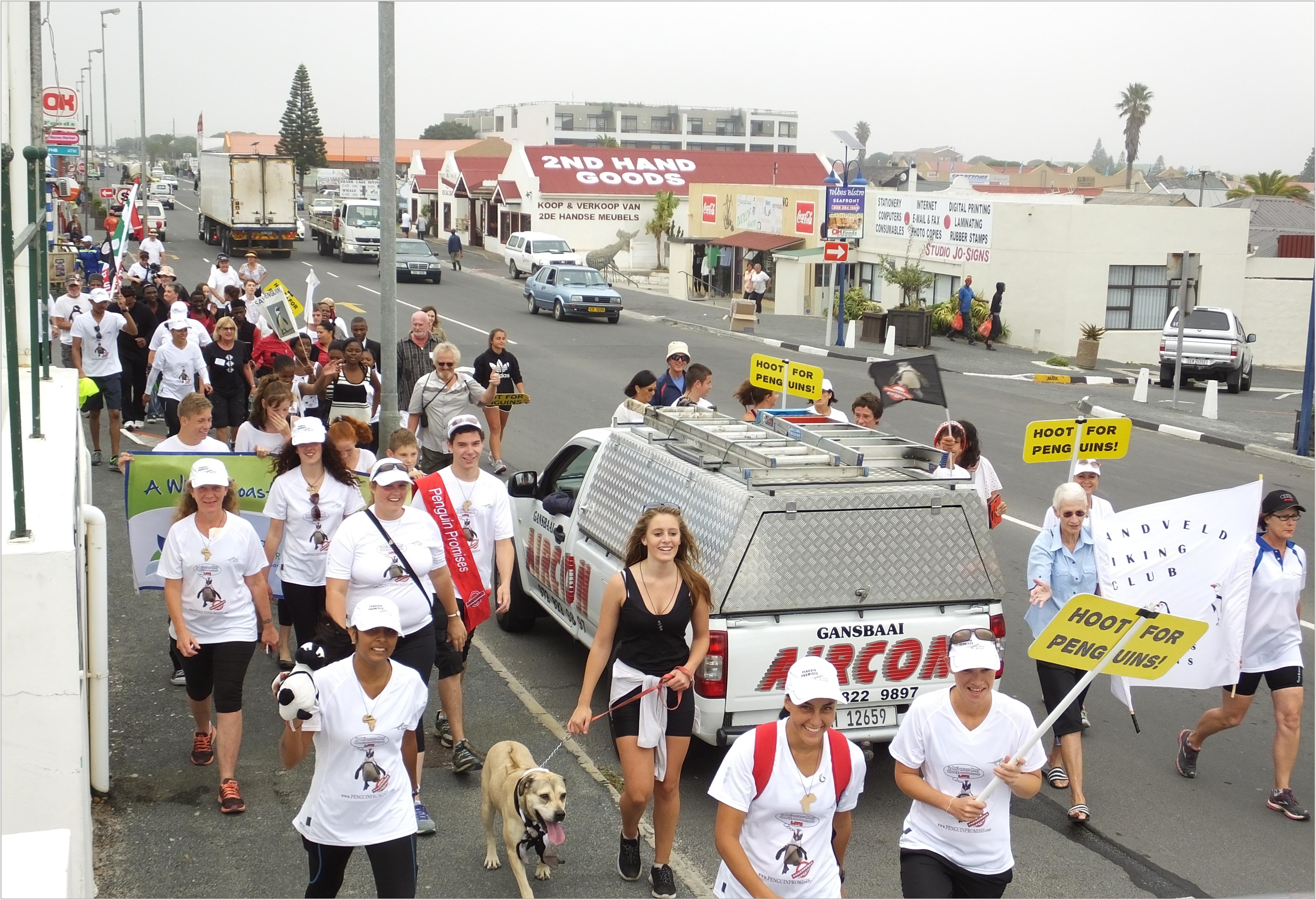 Die staptog gaan gepaard met plakkate wat lui: “hoot for penguins” en Gansbaaiers het goed saamgewerk met hul toeters.