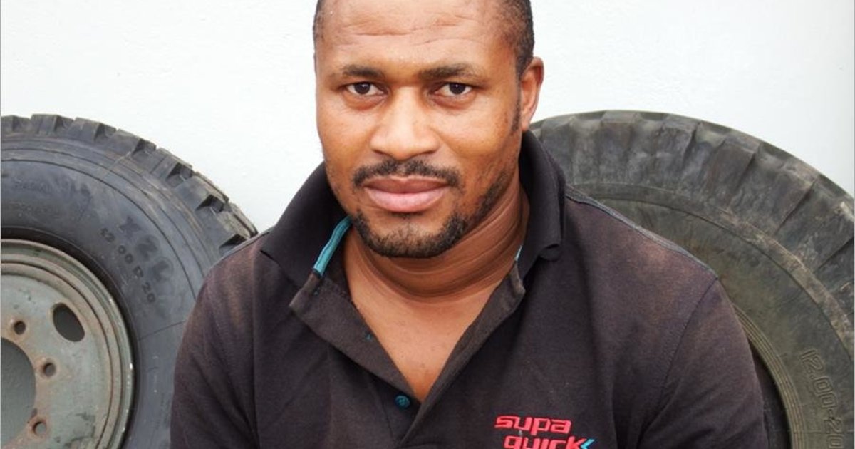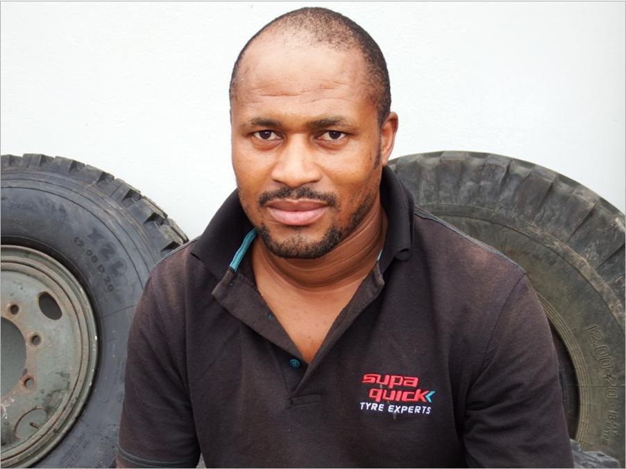 Jong (Jongumhlaba) Diko (41) is a Xhosa-speaking man from Masakhane, where he and his wife, Nosihle and their 4 children lived for the past 11 years. Jong started his career at Supa Quick in the Industrial area three years ago, where he worked in the Tyre Department. About three months ago Jong’s dream came true. He has been promoted to be fully in charge of the Tyre Department as Supervisor. “This means I have to take several decisions on a regular basis. I have to distribute the workload between myself and my two staff members and take care of several other supervisor’s tasks,” Jong said, “but I still do my part of the work as well!”