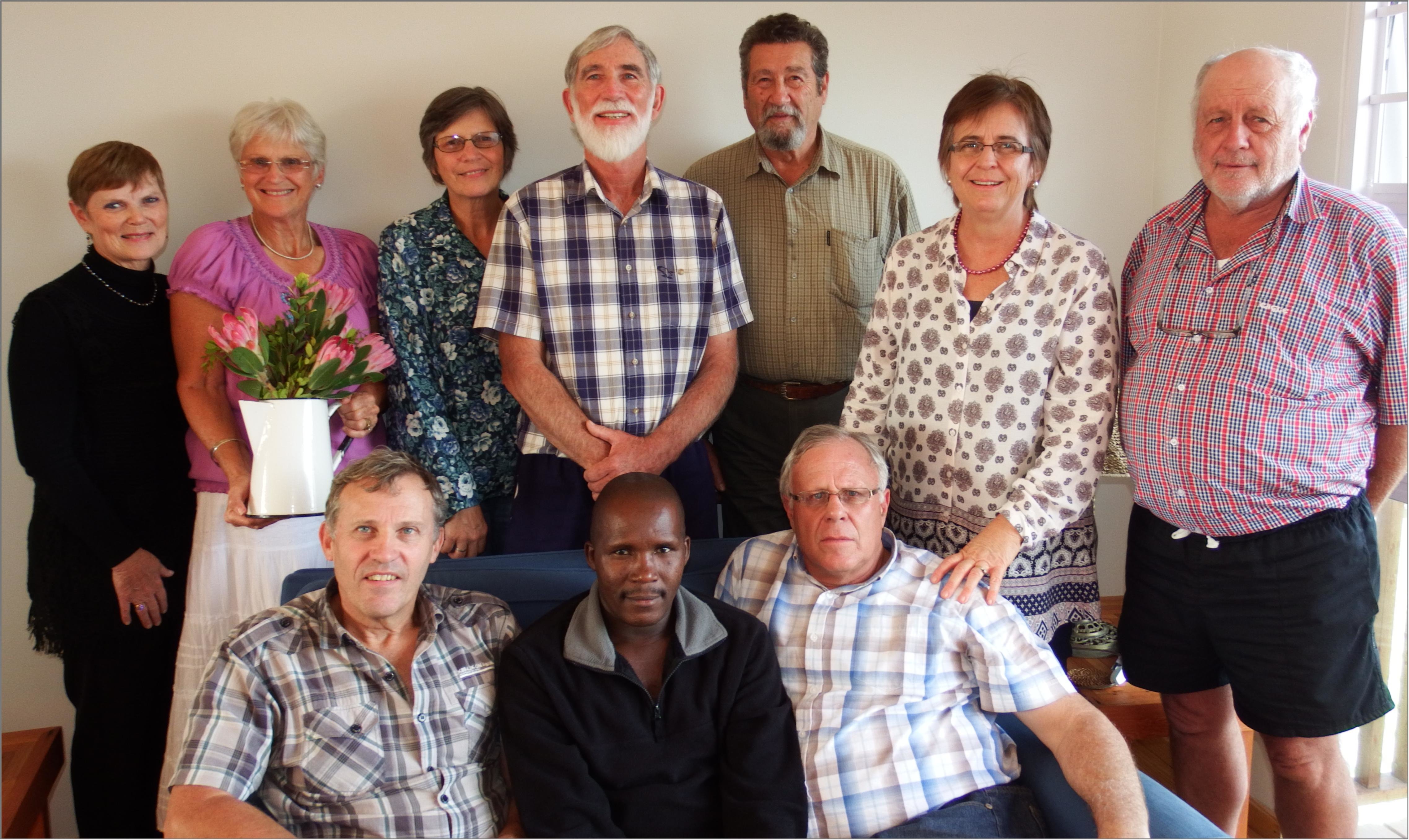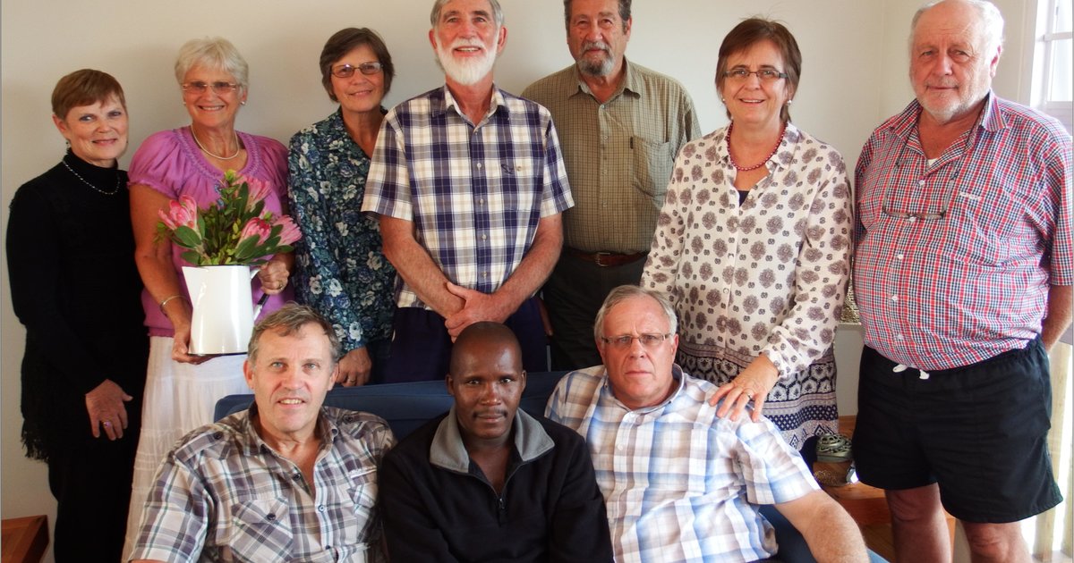 Ds Lourens van der Westhuizen en past Bongenkosie (Bongi) Mthembu van die Makhathini-vlaktes (ou Noord Zululand) in KwaZulu-Natal, het vir ‘n week of wat kom kuier. Ds Van der Westhuizen lei heelparty van die NGK se Pinksterdienste, terwyl Bongi van sy kosbare getuienis lewer. Die foto is geneem tydens ‘n gesellige braai in ds Dirk en Marina van Dyk se huis wat deur die Uitreik-aksie gereël is. Voor vlnr is ds Lourens van der Westhuizen, past Bongenkosie Mthembu en ds Dirk van Dyk. Agter vlnr is Anita Botha, Elcine Hulme, Ansie en Gerhard Germishuys, Johan van Wyk, Marina van Dyk en Johan Hulme (Voorsitter: Uitreik-aksie)