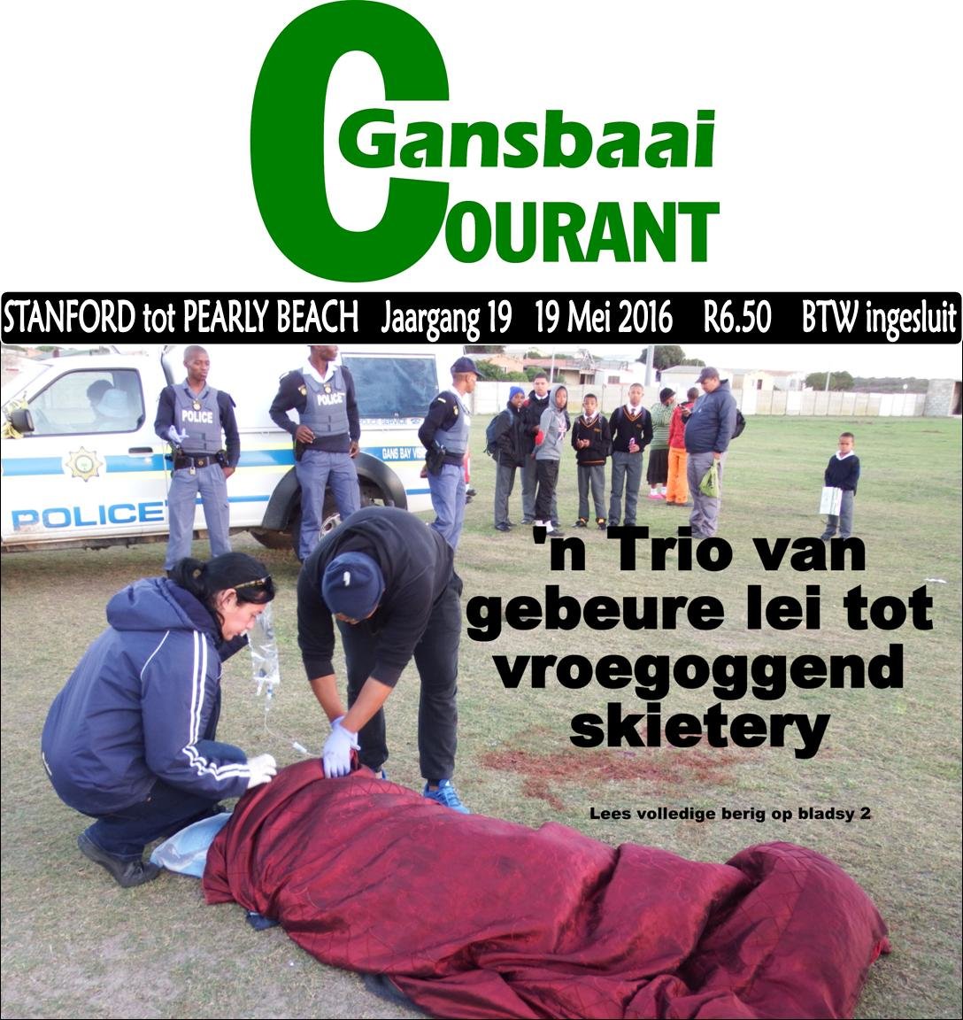 ‘n Interessante sameloop van omstandighede Woensdagoggend, 18 Mei 2016, asook die vinnige optrede deur Gansbaai SAPD se Speurtak, kan moontlik ‘n huisroof in Kusweg en ‘n skietery langs Blompark se sportgronde gedurende dieselfde oggend, asook ‘n verklaring deur ‘n jeugdige “ooggetuie” van genoemde skietery, met mekaar verbind.