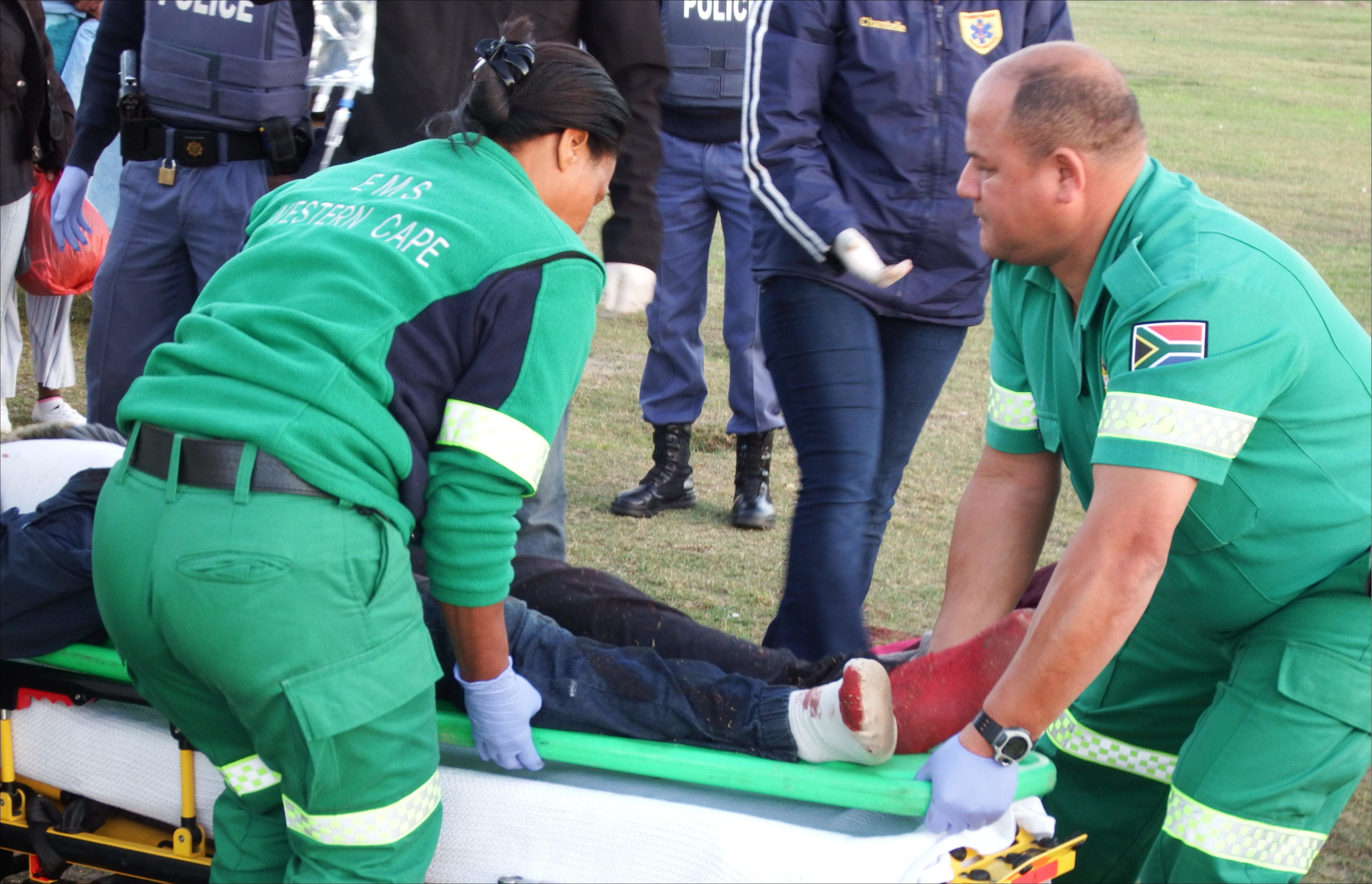 Omstreeks 05:00 het ‘n konstruksiewerker, wat ‘n woonstel agter ‘n huis in Kusweg huur, wakker geword van ‘n flitslig wat in sy oë skyn. ‘n Xhosa-sprekende man het in gebroke Afrikaans gesê hy soek geld en hom met ‘n mes gedreig. Die inbreker het die man in sy kamer toegemaak en die res van die woonstel deursoek. Die slagoffer het ‘n .38 rewolwer en ‘n skootrekenaar in ‘n tas gehad. Toe hy die rewolwer vir selfverdediging wou uithaal, het hy besef die sak is reeds deur die inbreker geneem. Die sak met die .38 rewolwer en skootrekenaar, asook ‘n iPhone en Samsung selfoon word steeds vermis. Dieselfde oggend omstreeks 07:00 het die polisie ‘n oproep ontvang oor ‘n skietery langs Blompark se sportgronde. ‘n Man van Blompark is by die boonste hekkie langs die geboue in sy linkerbeen geskiet. Hy het oor die volle lengte van die rugbyveld met ‘n bloedspoor gestrompel tot oor die heel onderste doodlyn agter die rugbypale, waar hy ineengestort het met ‘n groot bloedkol langs hom. Gansbaai SAPD, asook speurders het gearriveer en Overstrand Medical Respons se Cassie Carstens en Riaan Buys en hul span was ook vinnig op die toneel. Hulle het die gewonde pasiënt gestabiliseer en warm toegemaak, terwyl daar op die Provinsiale ambulans gewag is. Inligting is deur die speurders opgevolg en twee persele in Maskahane is dieselfde dag deursoek, waarna vyf arrestasies gemaak is, met heelparty dagga wat terselfdertyd gevind is. Die “raaisel” is dieselfde dag nog deur die speurders ontrafel: Die Xhosa-sprekende man wat met die huisroof verbind word, staan as “Rasta” (±30) bekend, maar is nog nie gearresteer nie. Die man wat geskiet is, is Christo Newman (±23) en staan as “The Beast” bekend en is nog in Hermanus Provinsiale Hospitaal. Die 17-jarige jeugdige wat die “ooggetuie” van die skietery was, is gearresteer as ‘n moontlike verdagte by die huisroof. Hy het later erken dat al drie van hulle by Blompark se sportgronde bymekaar was. Hy het gesê dat Christo die .38 rewolwer in die Xhosa-sprekende man se broek gesien het en dit probeer uitruk het, waarna hyself in die been geskiet is. “Die vermoede bestaan dat al drie van hulle by die huisroof betrokke was en dat ‘n stryery vermoedelik oor die gesteelde eiendom ontstaan het, maar ons wag nog vir forensiese uitslae,” het Sp.Kapt. Danie Rautenbach gesê. “Die publiek word versoek om verdagtes te alle tye te rapporteer vir opvolging deur die polisie.” Gansbaai SAPD se kontaknommer is 028-384-0201.