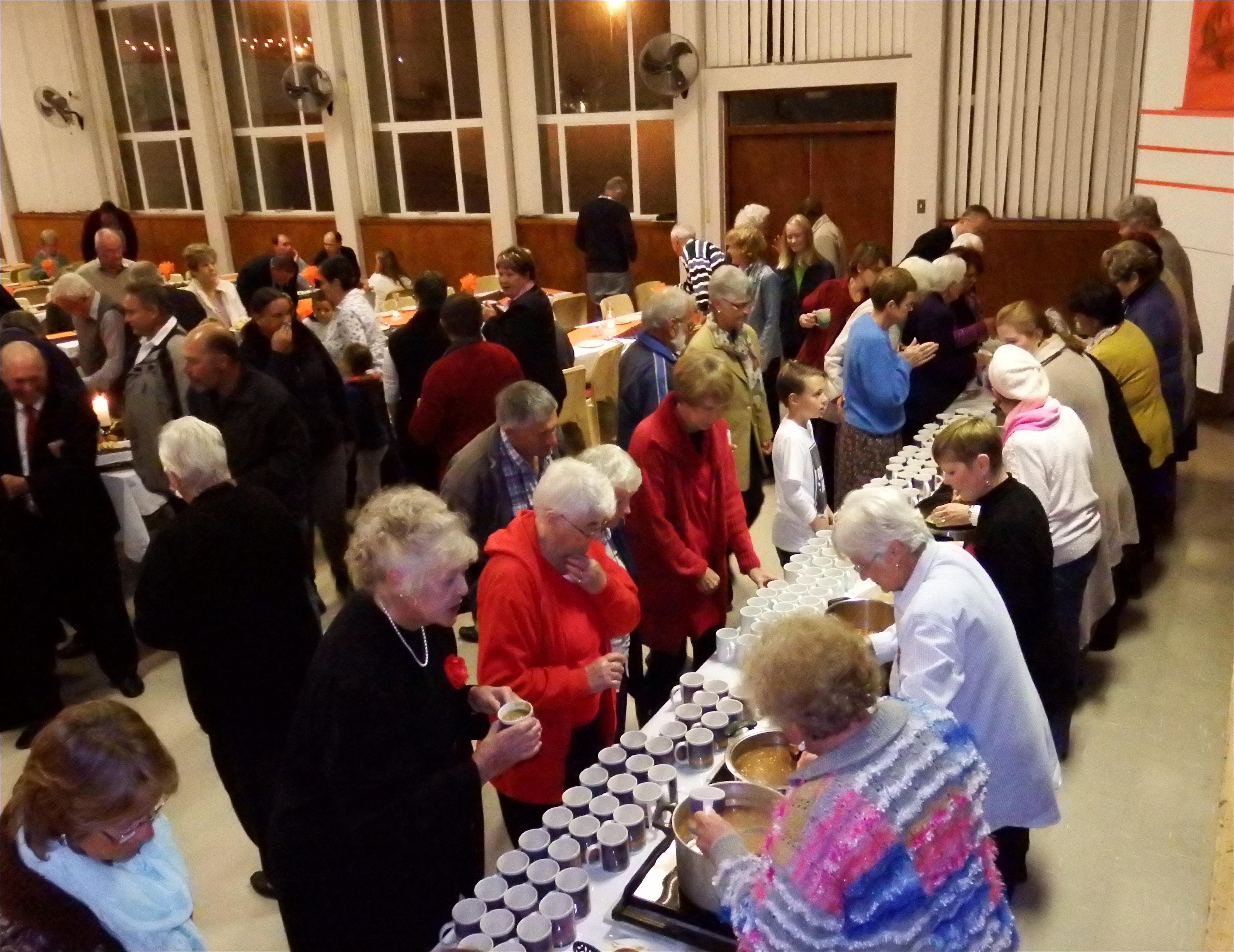 Die dames van die onderskeie wyke het saans na afloop van die dienste vir heerlike verversings gesorg, met die Vroue-aksie onder leiding van Elcine Hulme wat met Vrydagaand se Pinkstermaal vir nege verskillende potte met heerlike sop, asook ‘n lywige broodtafel in ‘n volgepakte Pretoriussaal met prag-versierde tafels, gesorg het. ‘n Groep van Laerskool Gansbaai se Gr 4-7 leerders het enkele pragtige opgewekte geestelike liedere in die saal gesing.