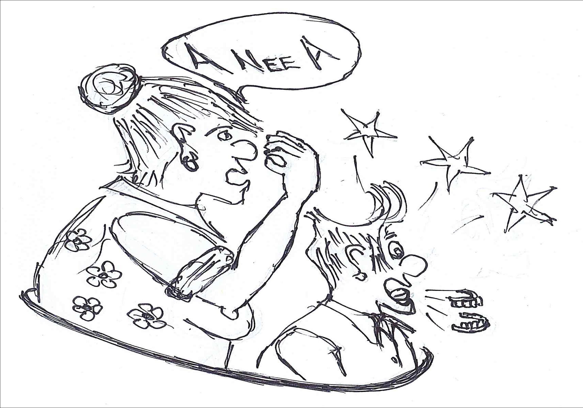 Ek dink die les wat hy geleer het was dat hierdie kwaai aanstaande skoonsuster van hom in die toekoms seker sal maak dat hy nie skeeftrap nie. Groete, Seemeeu