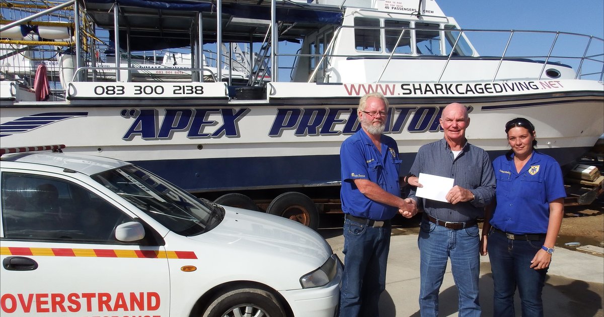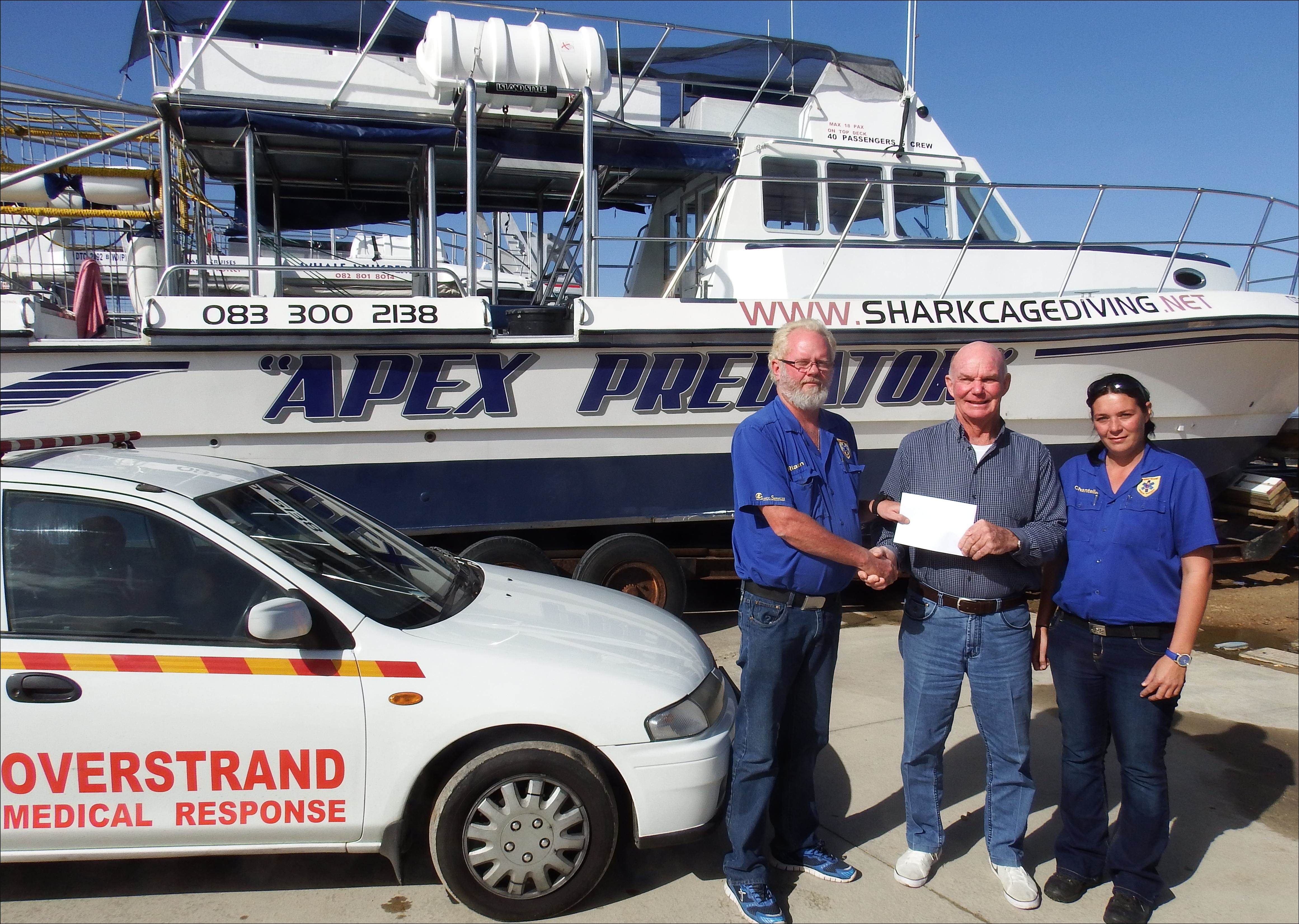 “Ons een ambulans is einde verlede jaar al volledig herstel, maar weens ‘n gebrek aan fondse kon dit nie afgehaal word nie,” vertel Riaan Buys van Overstrand Medical Response. “Ons het Brian McFarlane van Great White Shark Tours genader met ‘n voorstel dat ons bepaalde dienste aan die firma beskikbaar sal stel in ruil vir ‘n borgskap.” Brain het die borgskap, ‘n aansienlike bedrag, toegestaan en gesê dit gaan vir hom daaroor dat Overstrand Medical Response uitstekende dienste vir die gemeenskap lewer en dat hy graag op hierdie wyse by hulle betrokke wou raak.