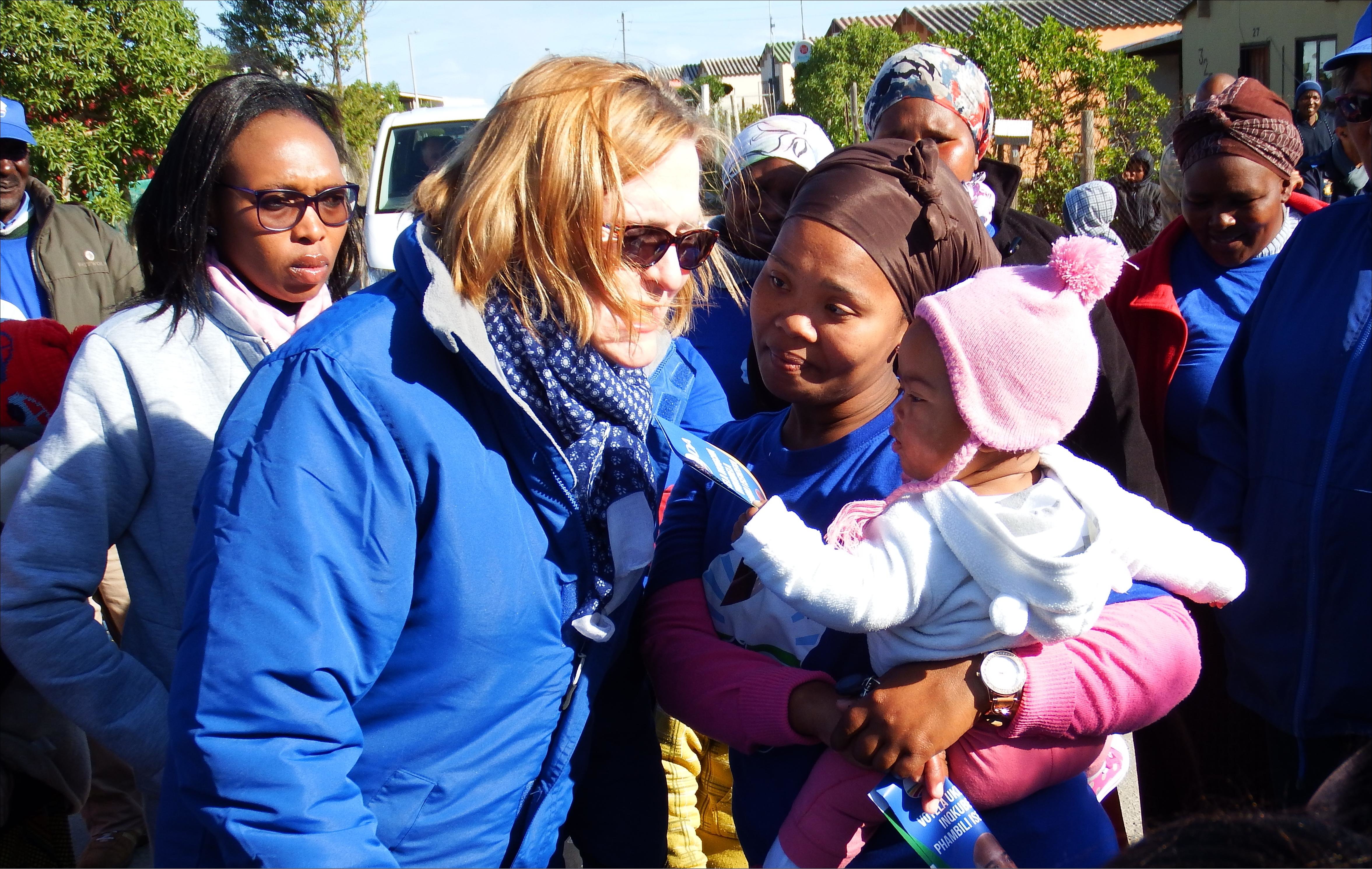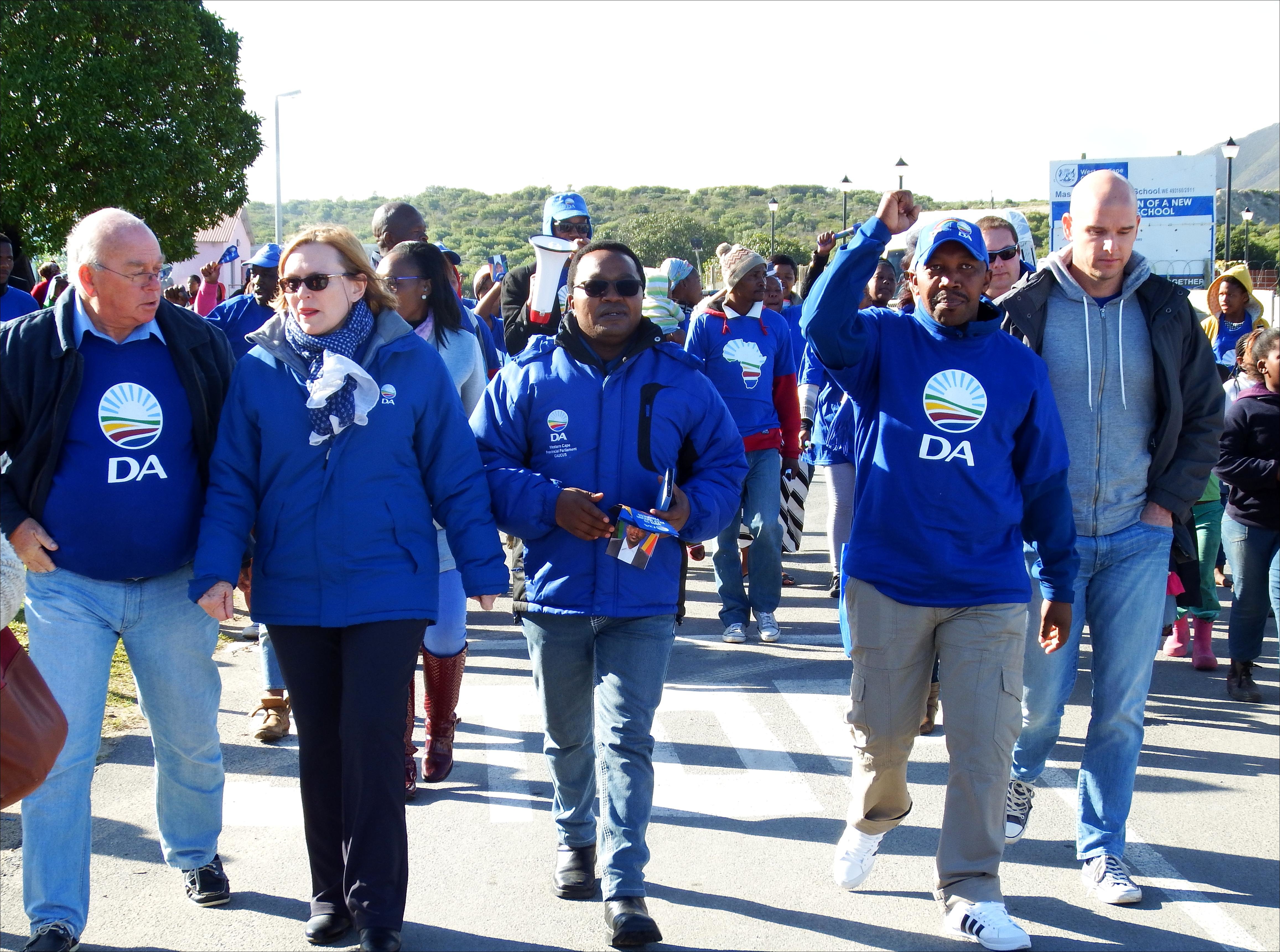 In Masakhane het ‘n groot groep inwoners al dansende en singende, Zille inkluis, agter haar deur die strate gestap. Sy het nie gehuiwer om van haar vlot Xhosa-magtiging gebruik te maak nie, wat groot byval onder die inwoners gevind het.