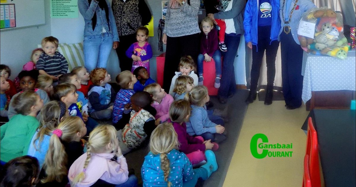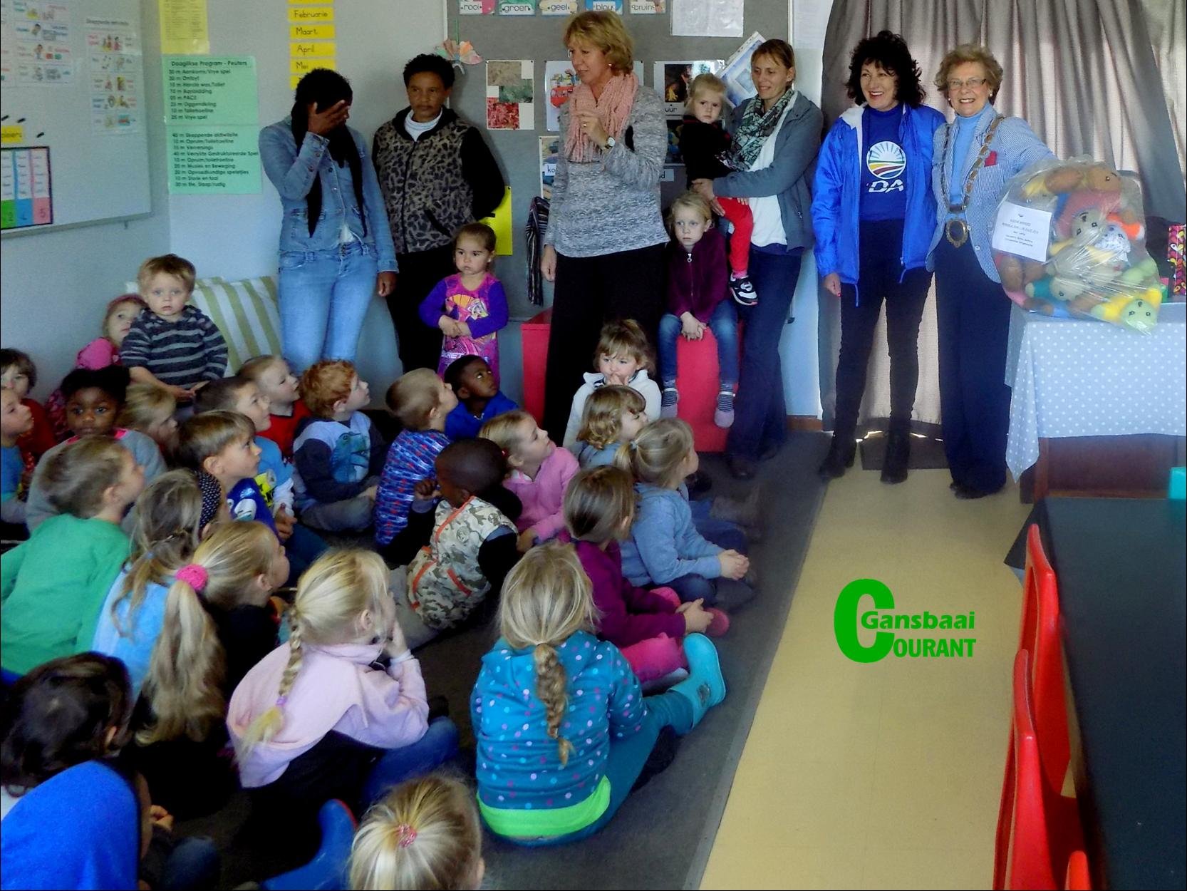 Overstrand Executive Mayor, Alderlady Nicolette Botha-Guthrie, joint Riana de Coning, councillor for Ward 2, on invitation in this year’s handing out of caps and mittens to selected pre-schools in the area.