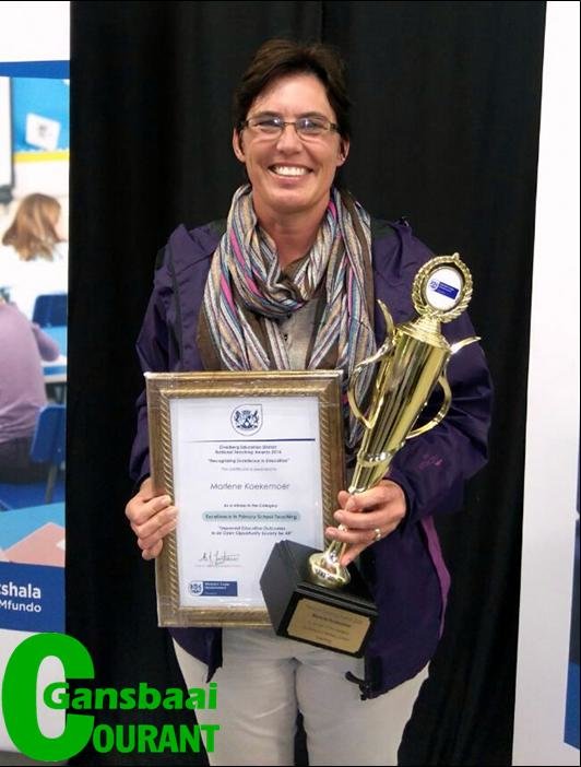 Laerskool Gansbaai se genomineerde kandidaat vir die Nasionale Onderwystoekennings vir 2016, Marlene Koekemoer, is Vrydagaand, 26 Augustus 2016 in Caledon tydens ‘n prestige funksie as die wenner in die afdeling van Uitnemendheid in Primêre Skool Onderrig aangewys.