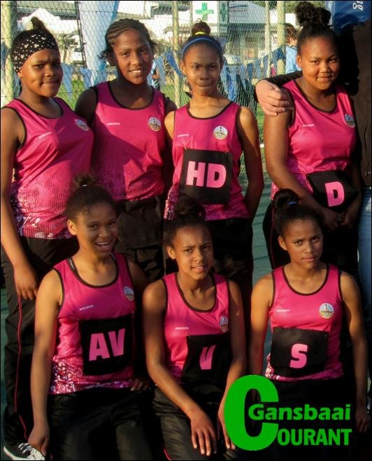 Die o/13 netbalspan van Gansbaai Primêr spog opgewonde met hul nuwe netbalklere, sweetpakke en sportsakke wat deur Premier Fishing geborg is.