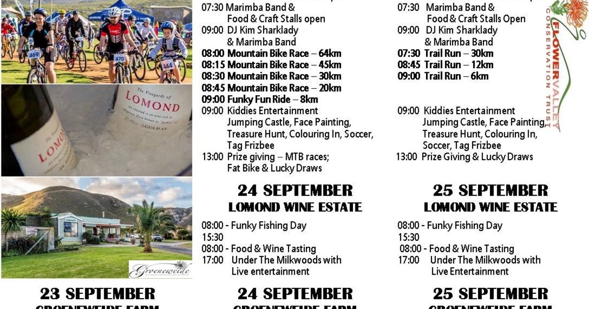Pomp op daardie fiets se wiele, trek jou tekkies aan en kom trap saam Fees. Gee jouself oor aan 'n buitelug ervaring met die 'Mountain Bike & Trail Run" by Flower Valley Plaas op 24 en 25 September.