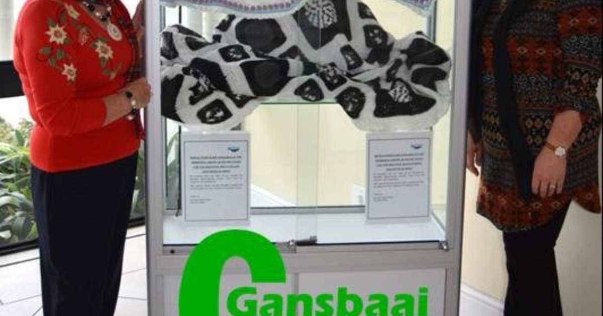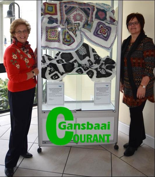 The handcrafted works of art crocheted by Estrellita Engelbrecht and Jane Langenhoven and their respective teams of ladies from the “Hooked on Tuesday” Club are on display in the glass cabinet in front of the Hermanus Library.