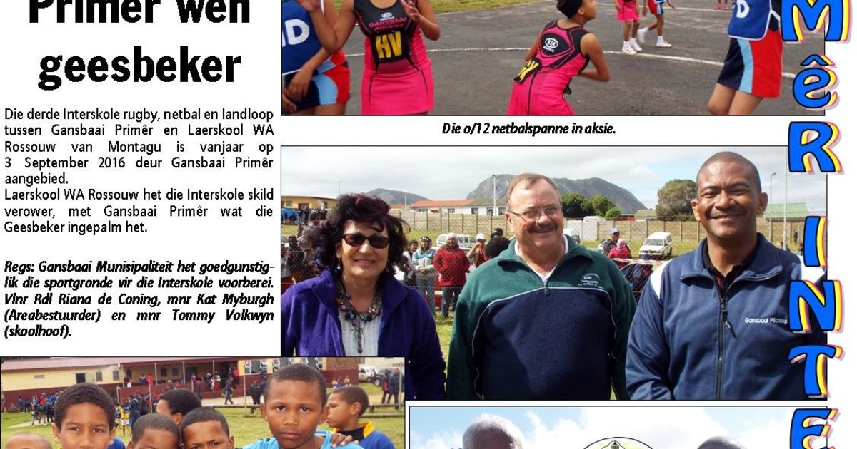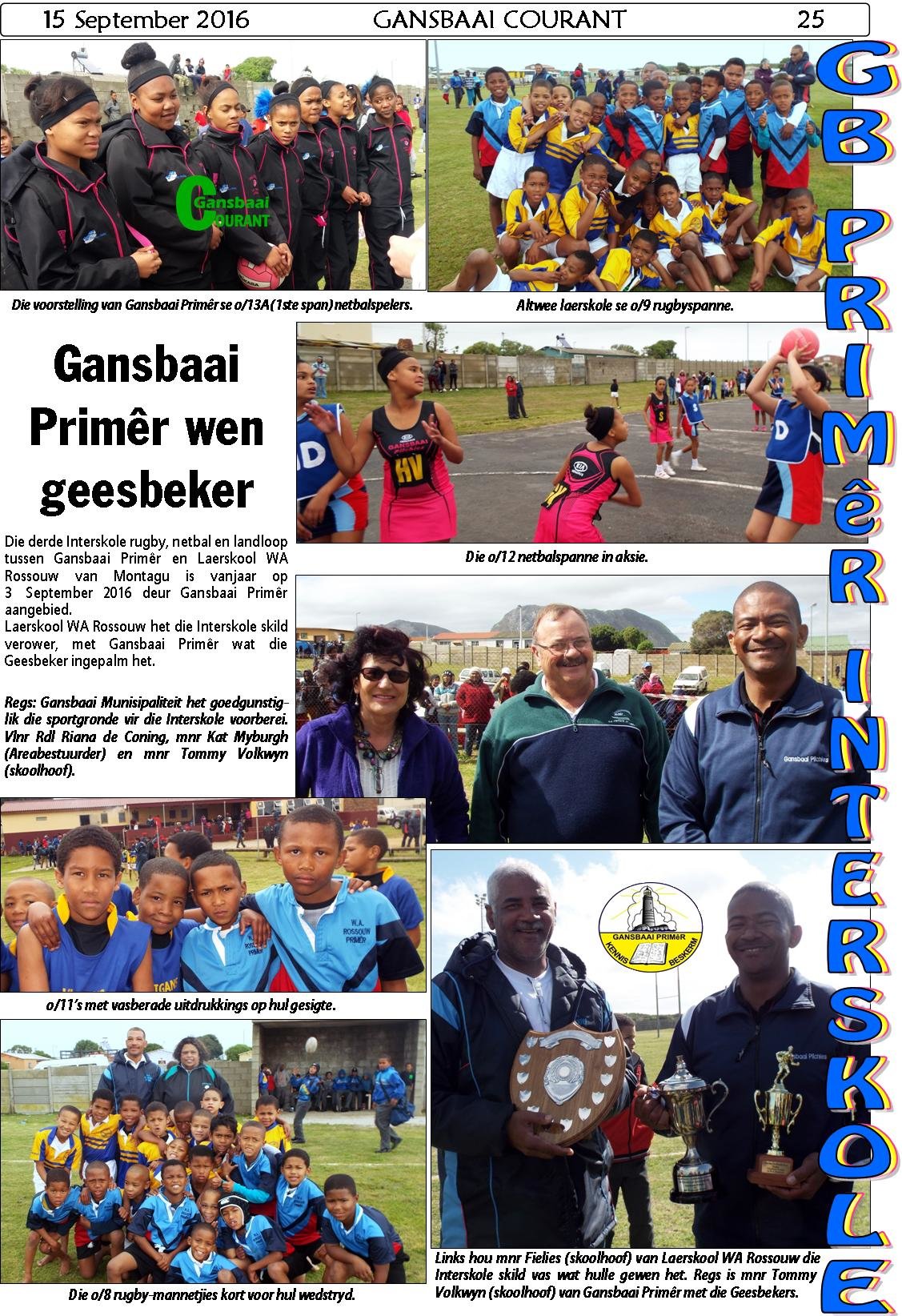 Die derde Interskole rugby, netbal en landloop tussen Gansbaai Primêr en Laerskool WA Rossouw van Montagu is vanjaar op 3 September 2016 deur Gansbaai Primêr aangebied.