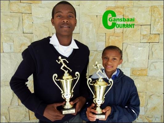 Twee van Gansbaai Primêr se staatmaker atlete, German Lewis (14) en Vasti Pietersen (11), het Saterdag, 24 September 2016 met die Funky Fynbosfees se landlope behoorlik die fynbos laat spat soos hulle gehardloop het.