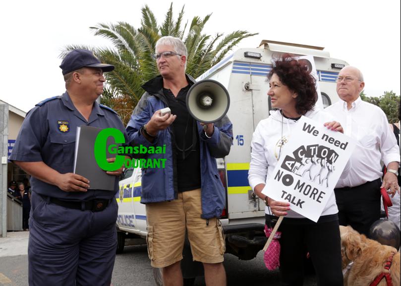 ‘n Memorandum is Saterdag voor die polisiestasie aan Brig Heilbron, Groepsbevelvoerder SAPD Overberg, oorhandig.