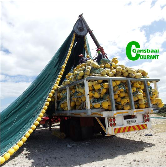 Ockie Viljoen en sy bemanning van Silwer Snapper het op Vrydag, 18 November 2016 die “boet” van hulle visnette gefinaliseer en was besig om dit op ‘n vragmotor te laai - ‘n enorme taak waar hyserkatrolle en mannekrag gebruik word.