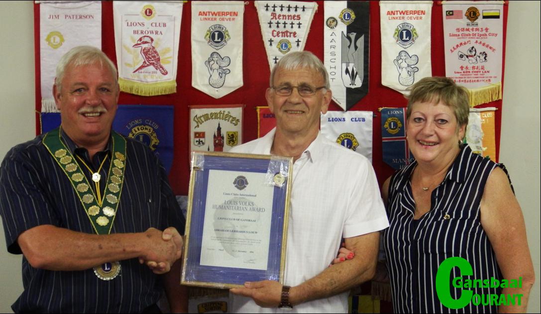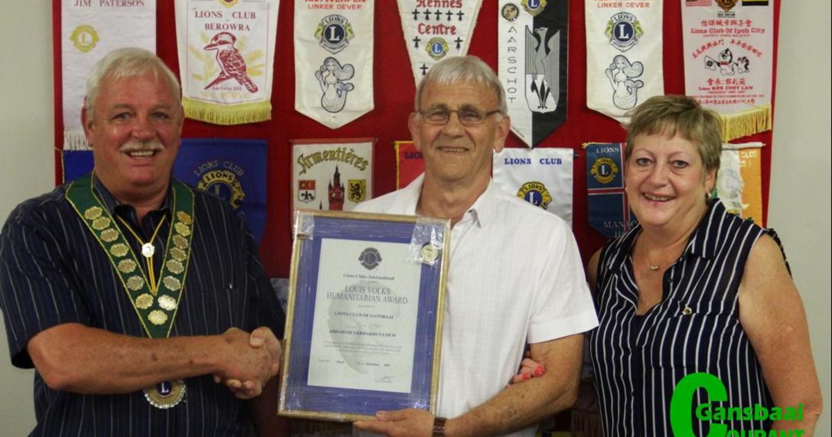 Die hoogste Suid-Afrikaanse Liontoekenning, die Louis Volks-toekenning, is Saterdag, 3 Desember 2016 aan Lion Gert Louw van Gansbaai Lionsklub oorhandig.